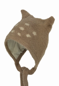 Ciepła czapka wykonana z przędzy przypominającej włos alpaki.