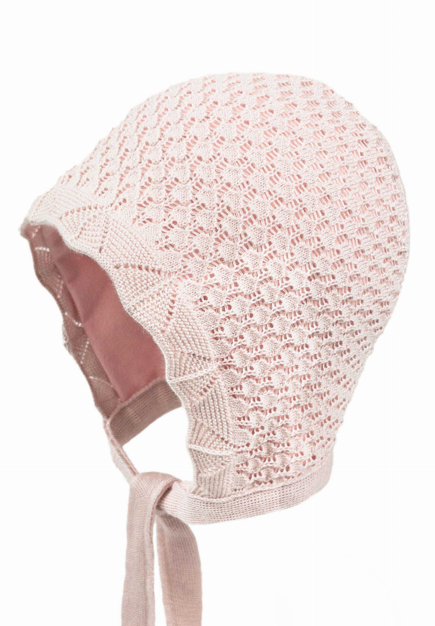 Miękka i przewiewna bonetka, wiązana pod szyją.