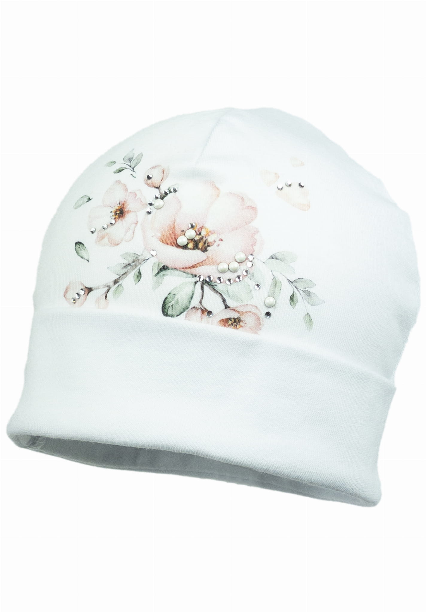 Bawełniana czapeczka dla małej dziewczynki z nadrukiem i wywinięciem ♥