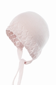 Śliczna czapeczka ZURI Pudrowy Róż do chrztu, została starannie wykonana w 50% z wiskozy bambusowej oraz 50% bawełna.