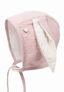 Dziewczęca bonetka z uszami królika organic SIDDY pink sand