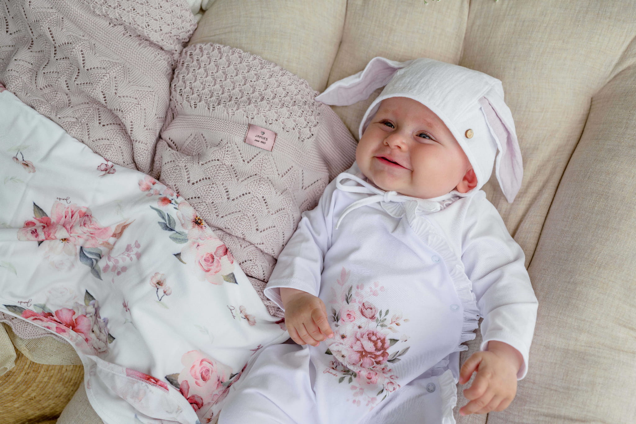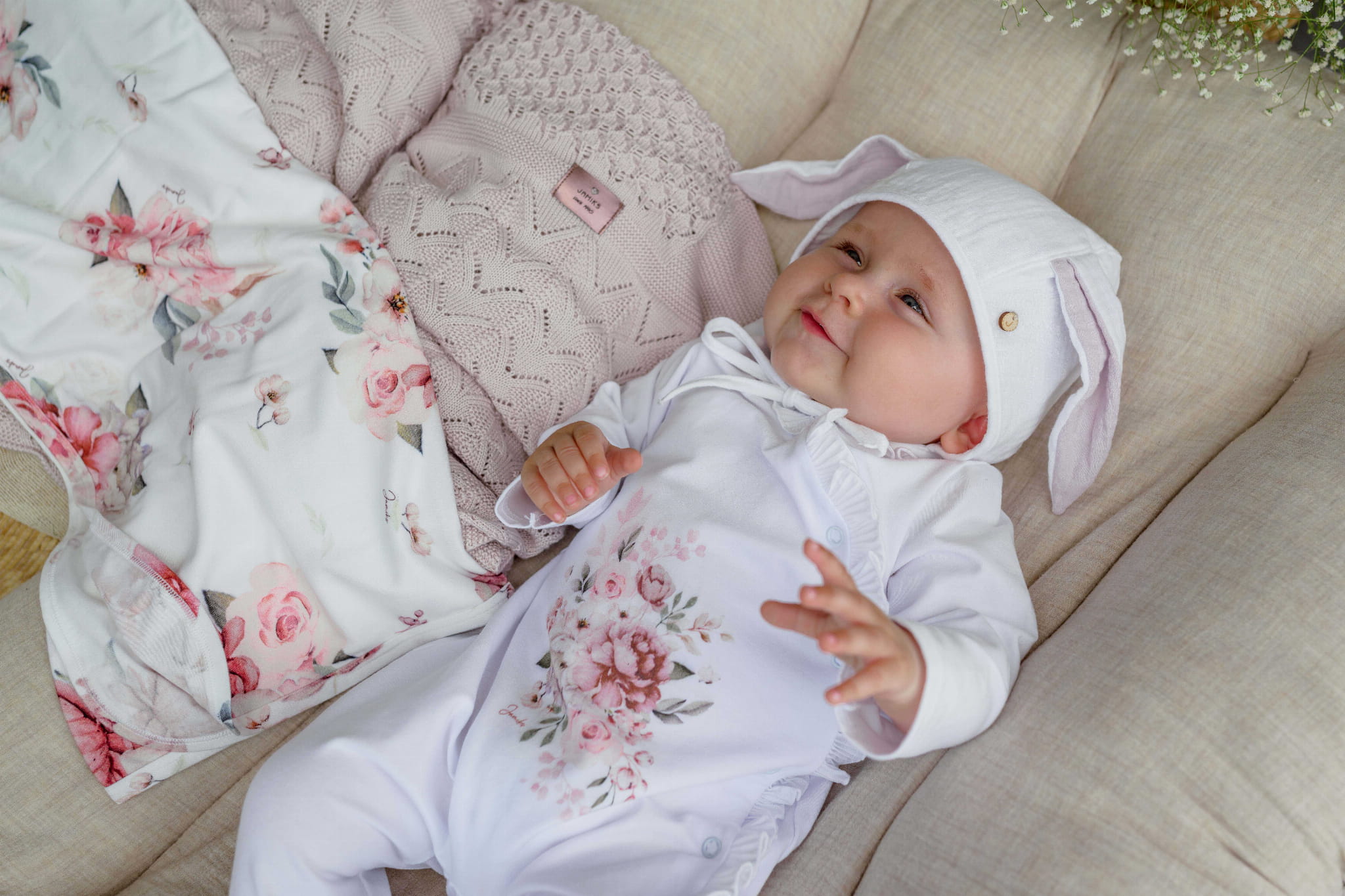 Urocza bonetka z króliczymi uszkami.