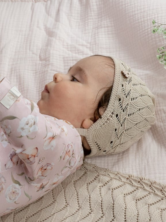 Dodatkowo, frędzelki nadają czapce uroku i dziewczęcego charakteru, natomiast wiązanie pod szyją zapewnia pewne dopasowanie do głowy dziecka oraz chroni czapkę przed zsuwaniem się.