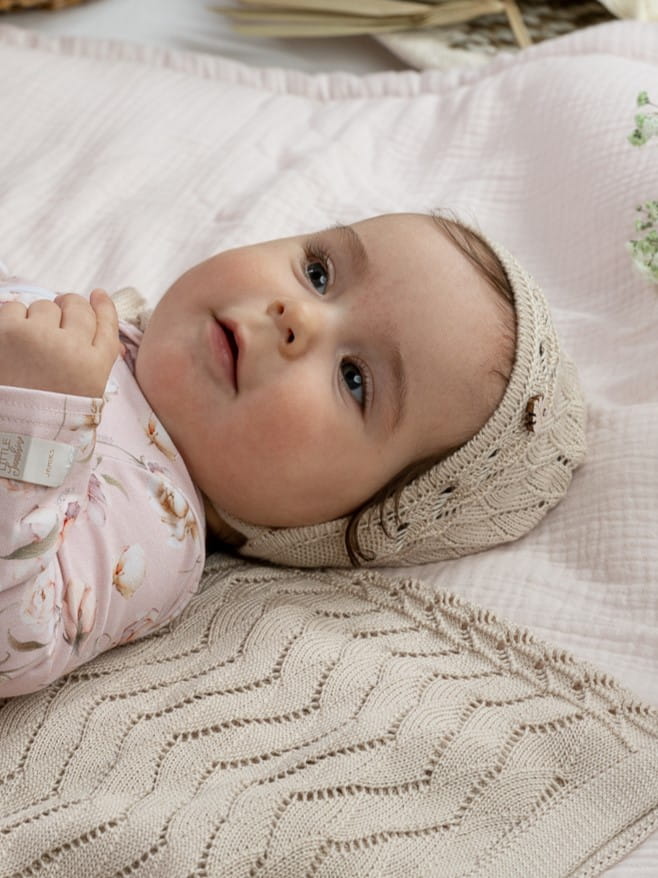 Dziewczęca czapka bambusowa na wiosnę FROA, z frędzelkiem i wiązaniem pod szyją, wykonana jest z 100% wiskozy bambusowej. Materiał ten jest znany ze swojej miękkości, delikatności oraz właściwości przewiewnych, co sprawia, że czapka jest odpowiednia na cieplejsze dni wiosenne.