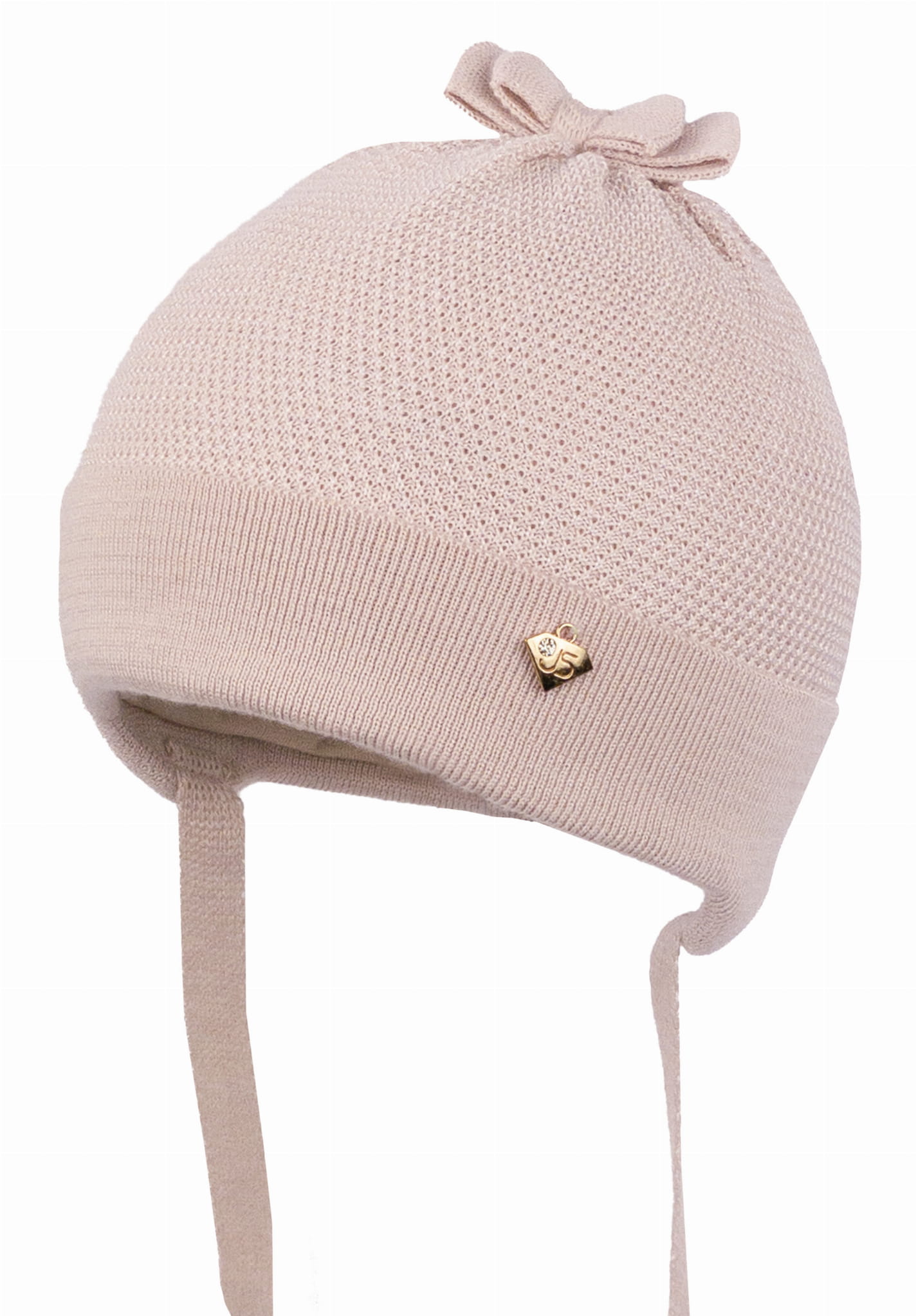 Kokarda ozdabiająca czapkę dodaje jej uroku i dziewczęcego uroku, nadając delikatności i elegancji. Wiązanie pod szyją nie tylko dodaje uroku, ale także zapewnia pewne dopasowanie do głowy dziecka i zapobiega zsuwaniu się czapki.