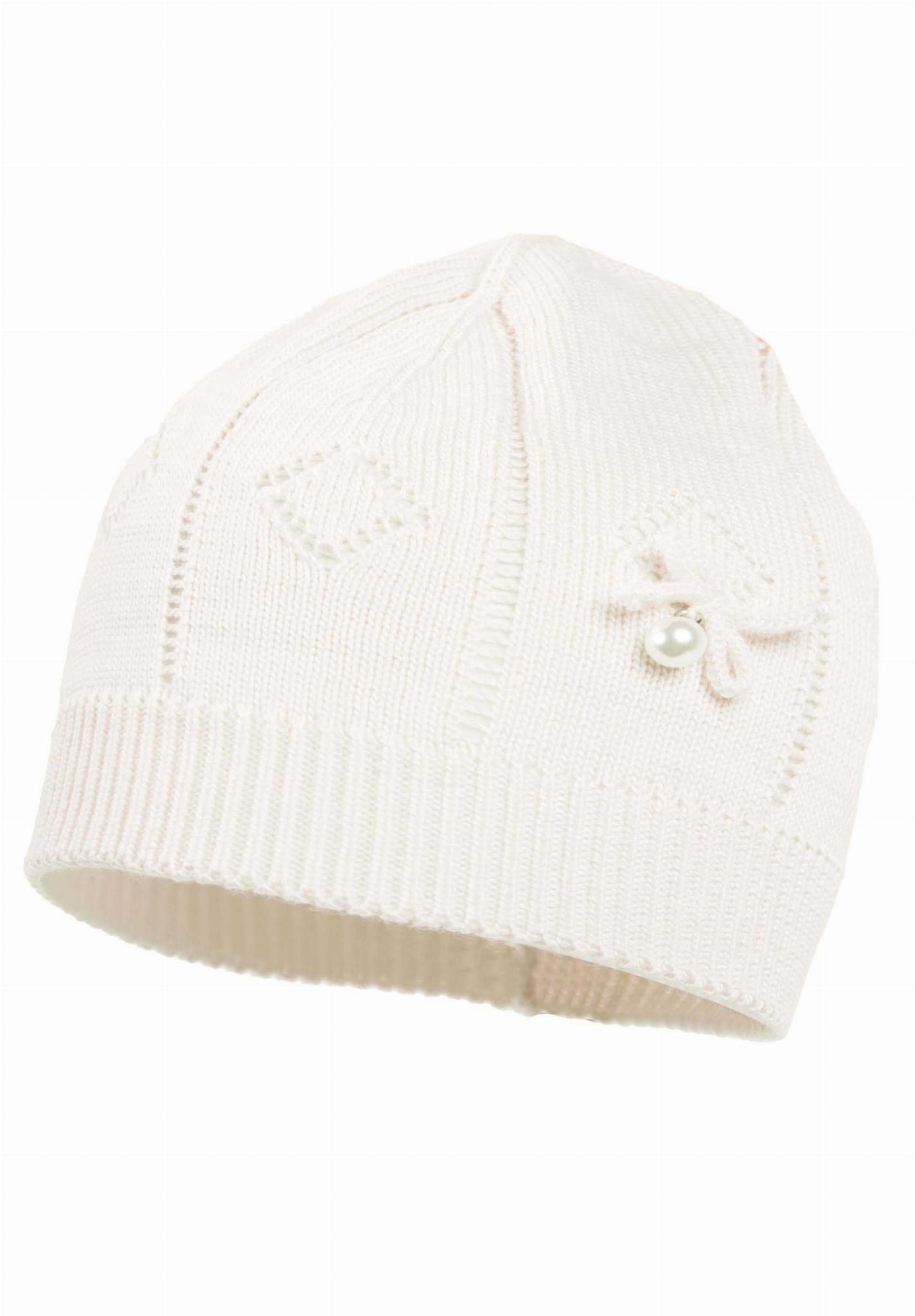 Czapka posiada także drobne zdobienie w postaci kokardki z perełką.