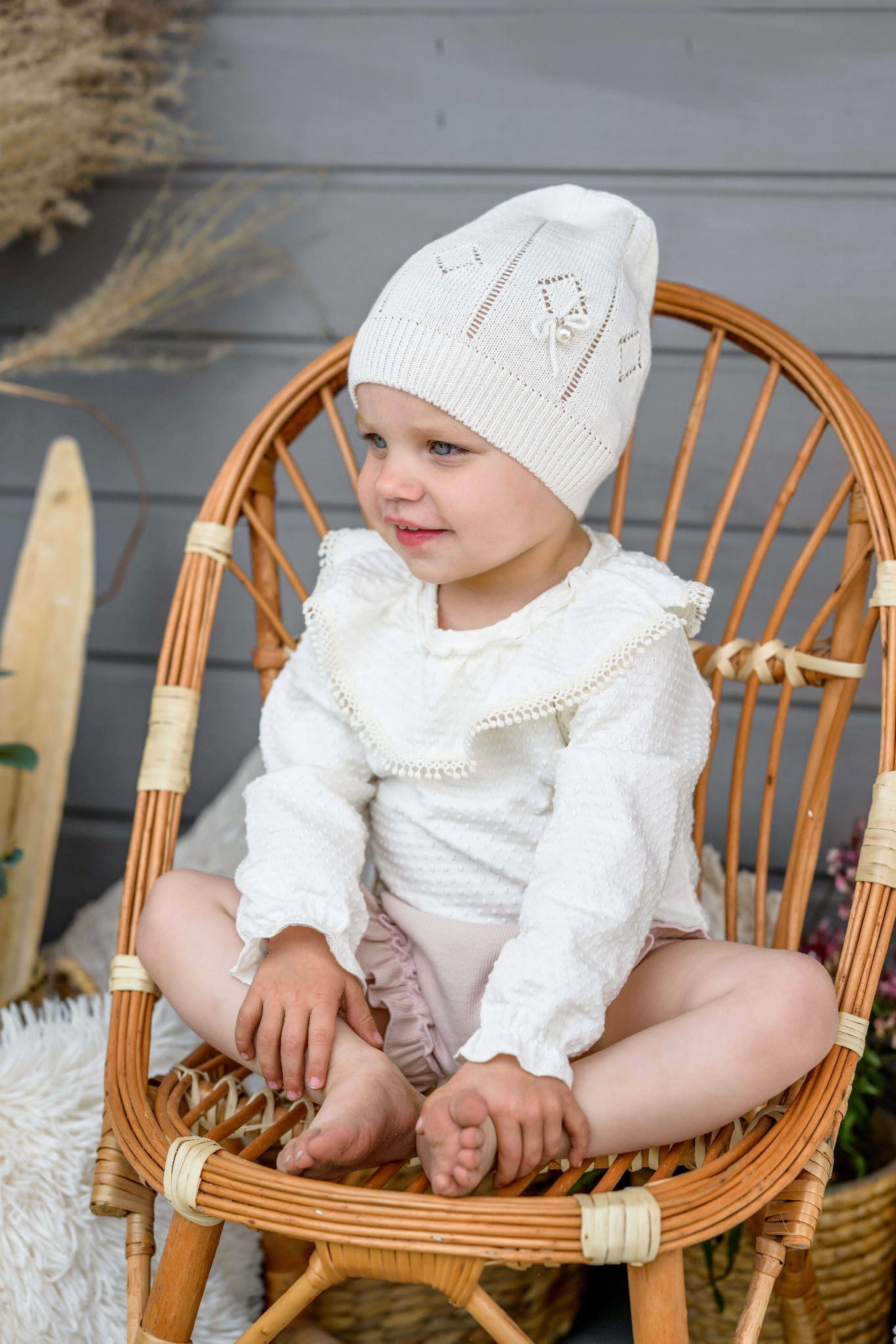 Oprócz pięknego wyglądu, czapka będzie również bezpieczna dla delikatnej skóry niemowlęcia.