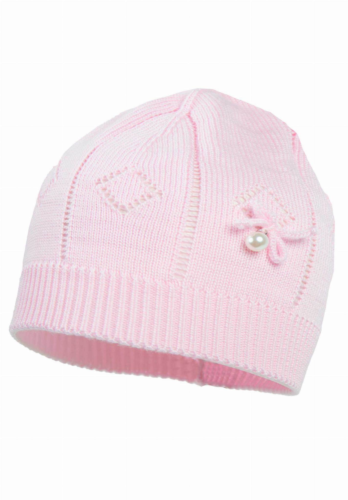 Czapka posiada także drobne zdobienie w postaci kokardki z perełką.