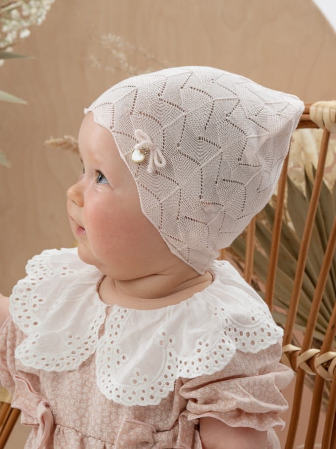 Mała kokardka i zawieszka w kształcie serca nadają czapce uroku i dziewczęcego charakteru, dodając delikatności i elegancji. Są to subtelne akcenty, które sprawiają, że czapka MATILIA staje się wyjątkowa i stylowa.