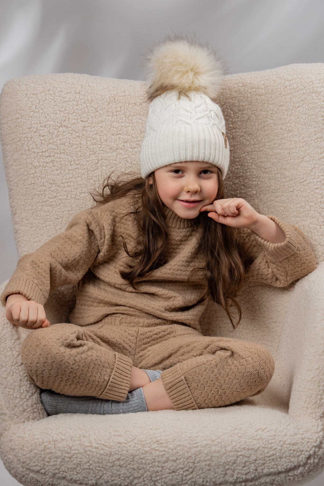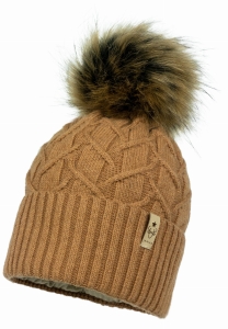 Dziewczęca czapka na zimę CAMERON Eko-pompon Tabak