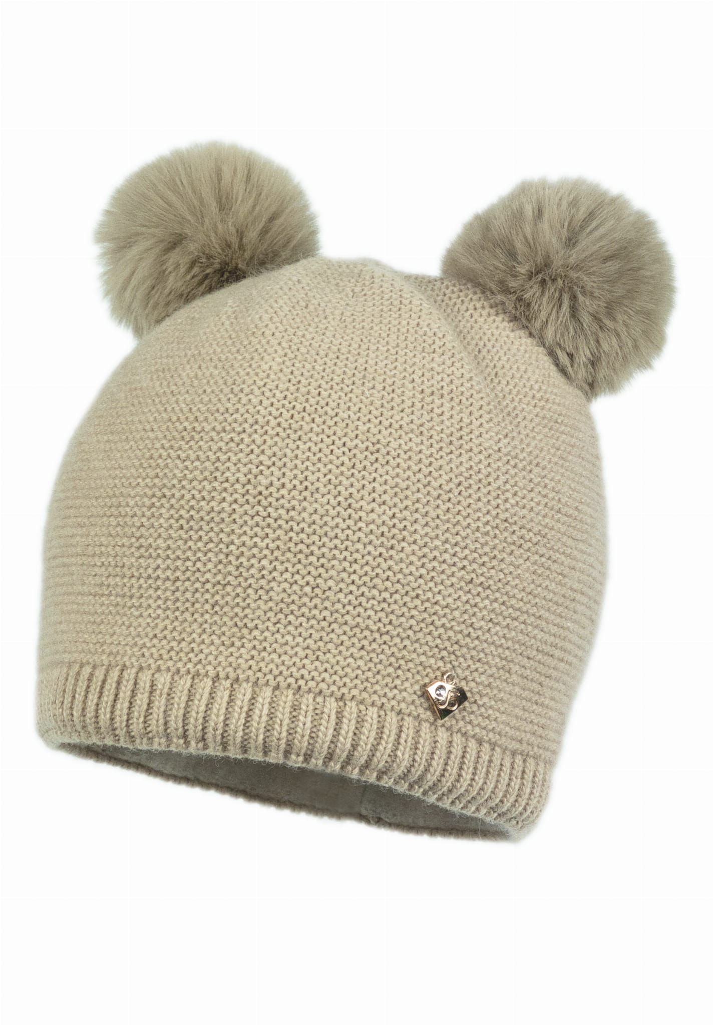 Czapka o klasycznym fasonie zdobiona dwoma pomponami.