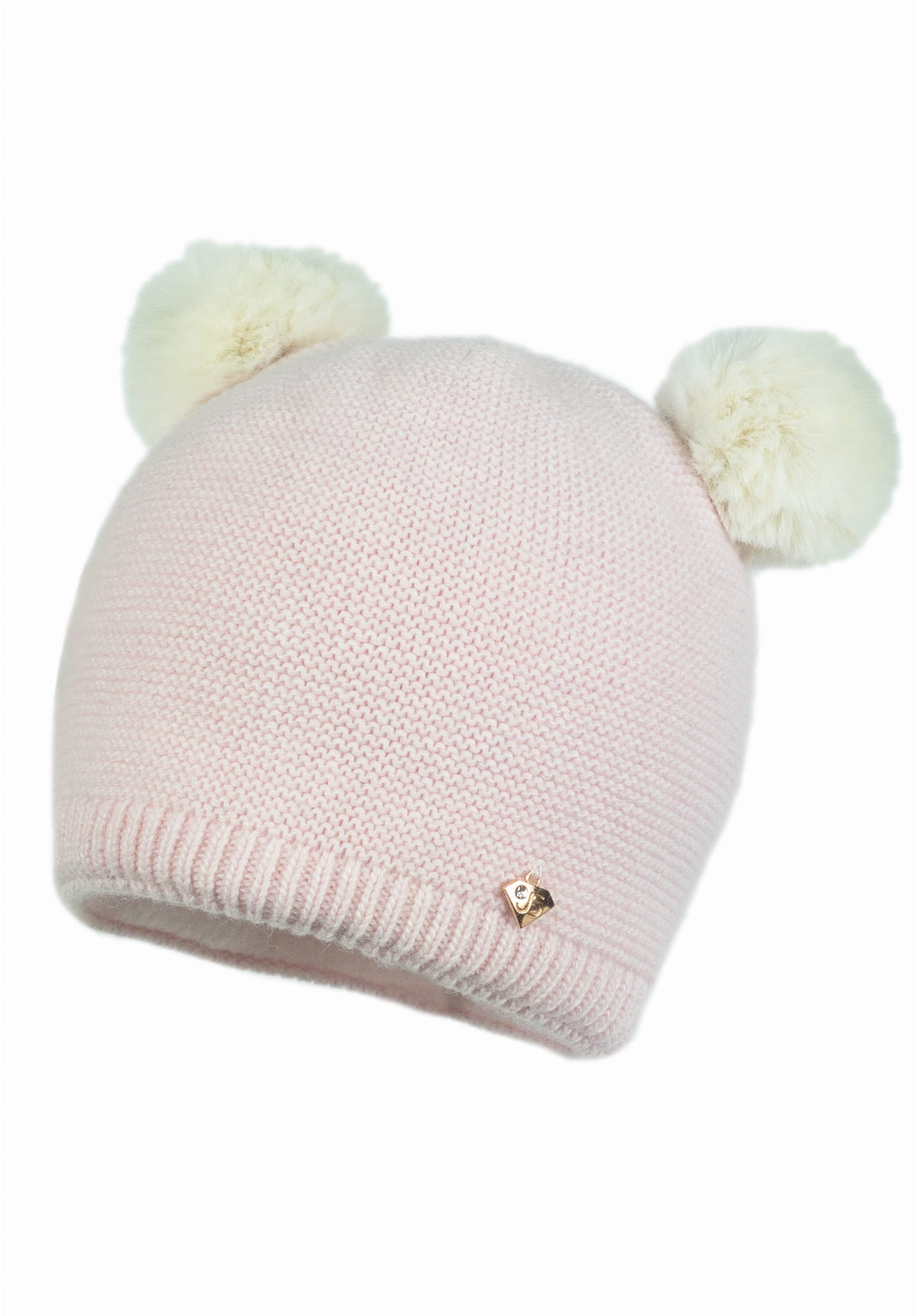 Czapka o klasycznym fasonie zdobiona dwoma pomponami.