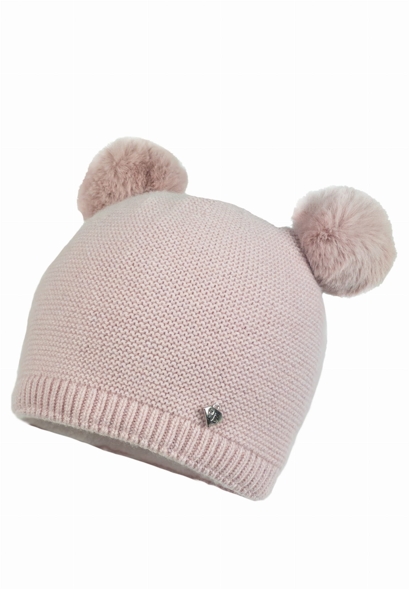 Czapka o klasycznym fasonie zdobiona dwoma pomponami.