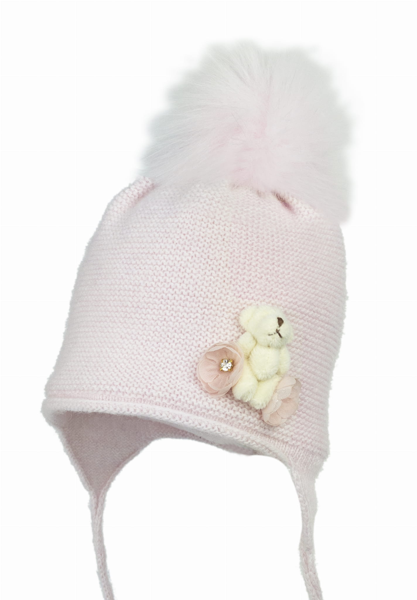 Dziewczęca czapka na zimę INGA Eko-pompon Jasny Róż