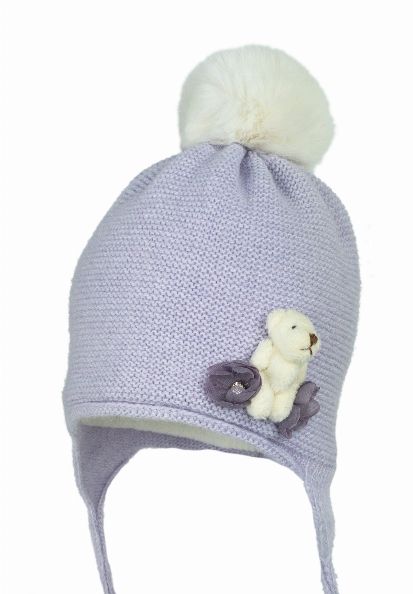 Dziewczęca czapka na zimę INGA Eko-pompon Lawendowy
