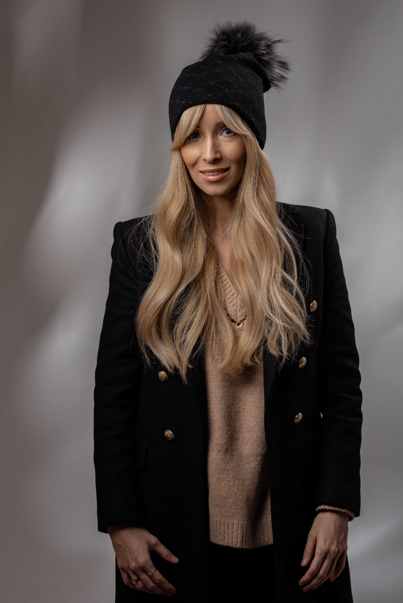 Elegancka czapka dla mamy i córki na zimę.