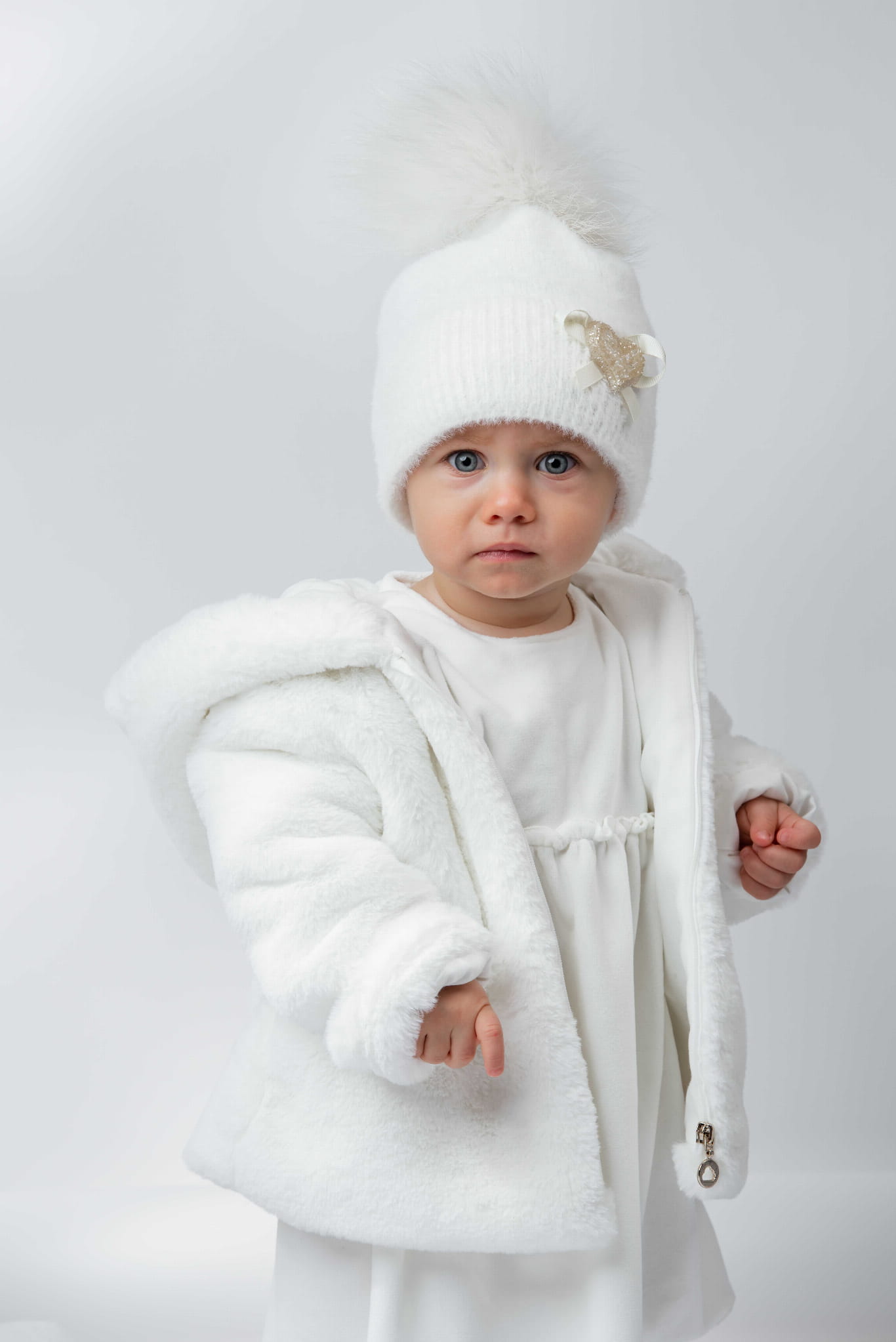 Dziewczęca czapka na zimę NINA Eko-pompon Ekri