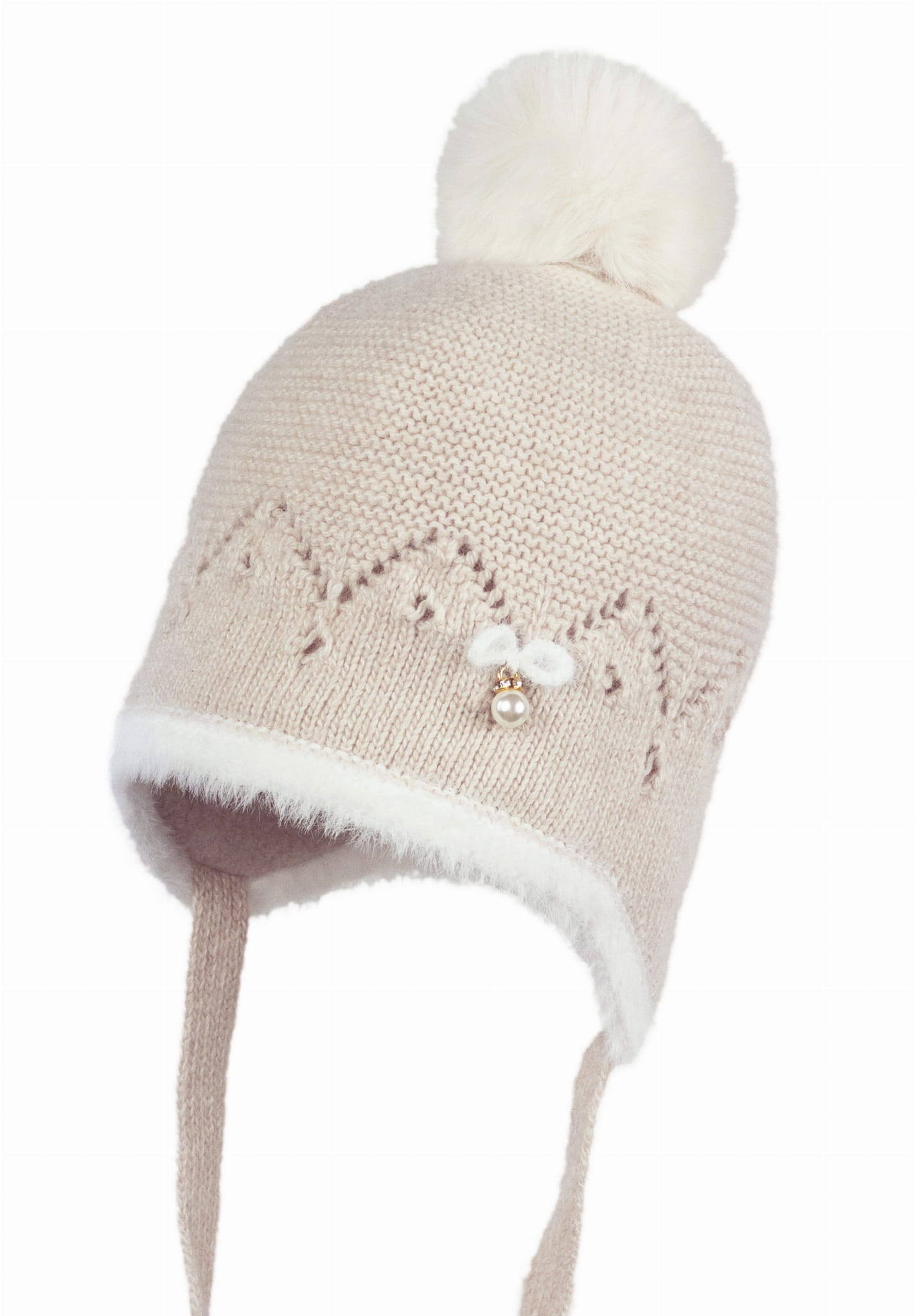 Dziewczęca czapka na zimę SARAH Eko pompon Jasny Beż