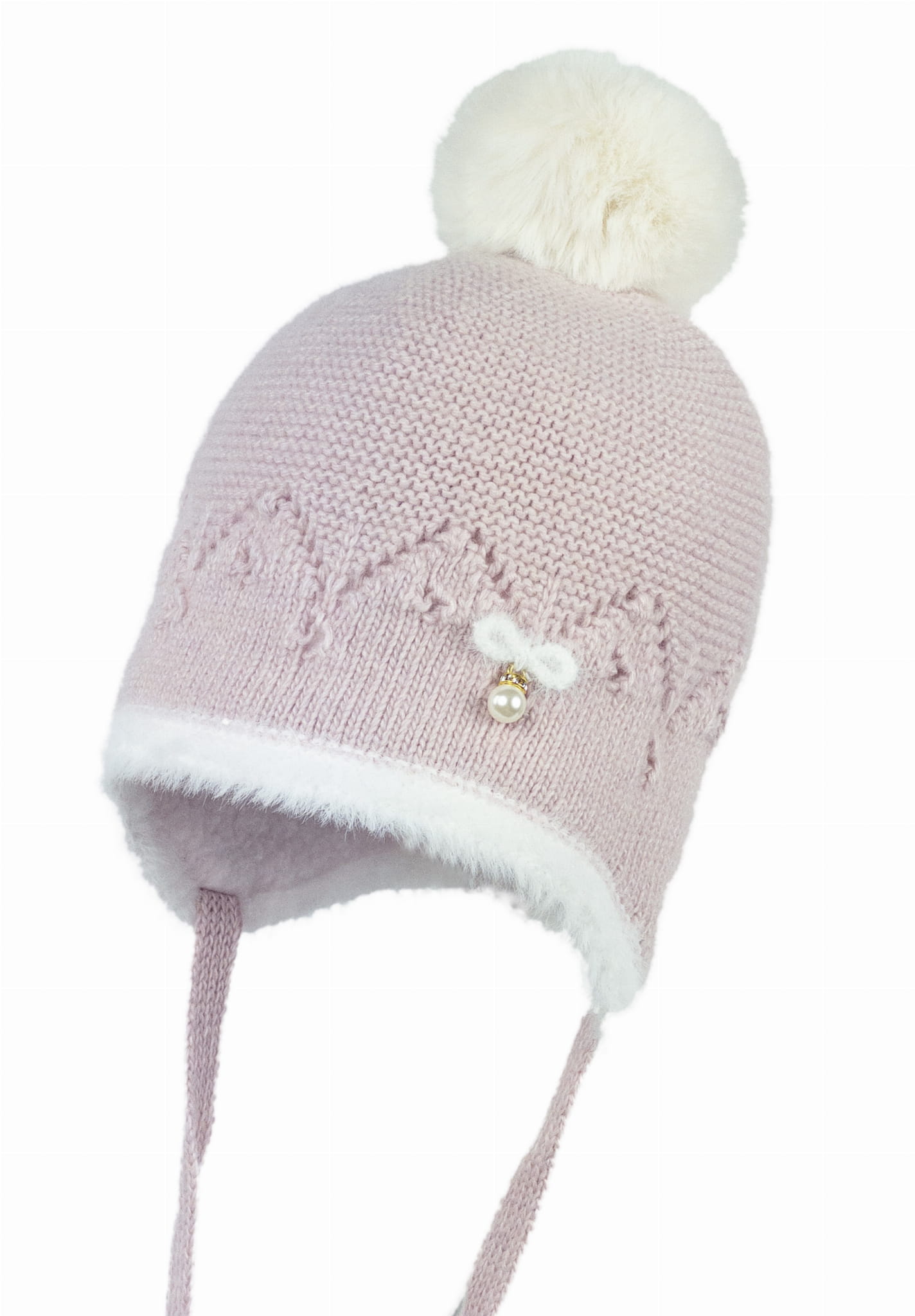 Dziewczęca czapka na zimę SARAH Eko pompon Pudrowy Róż