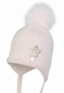 Dziewczęca czapka na zimę VESA Eko pompon Jasny Róż