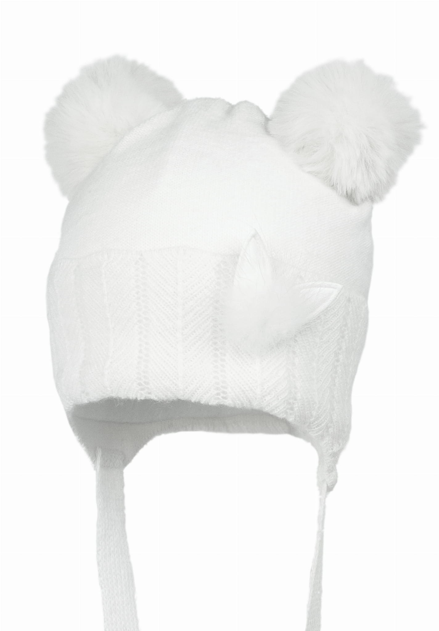 Dziewczęca czapka na zimę z dodatkiem wełny RUNA Eko-pompon Biały