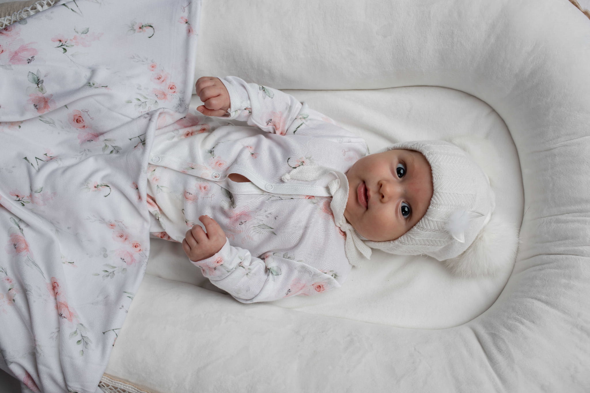 Wyprofilowane uszka i wiązanie dodatkowo chroni uszy dziecka.
