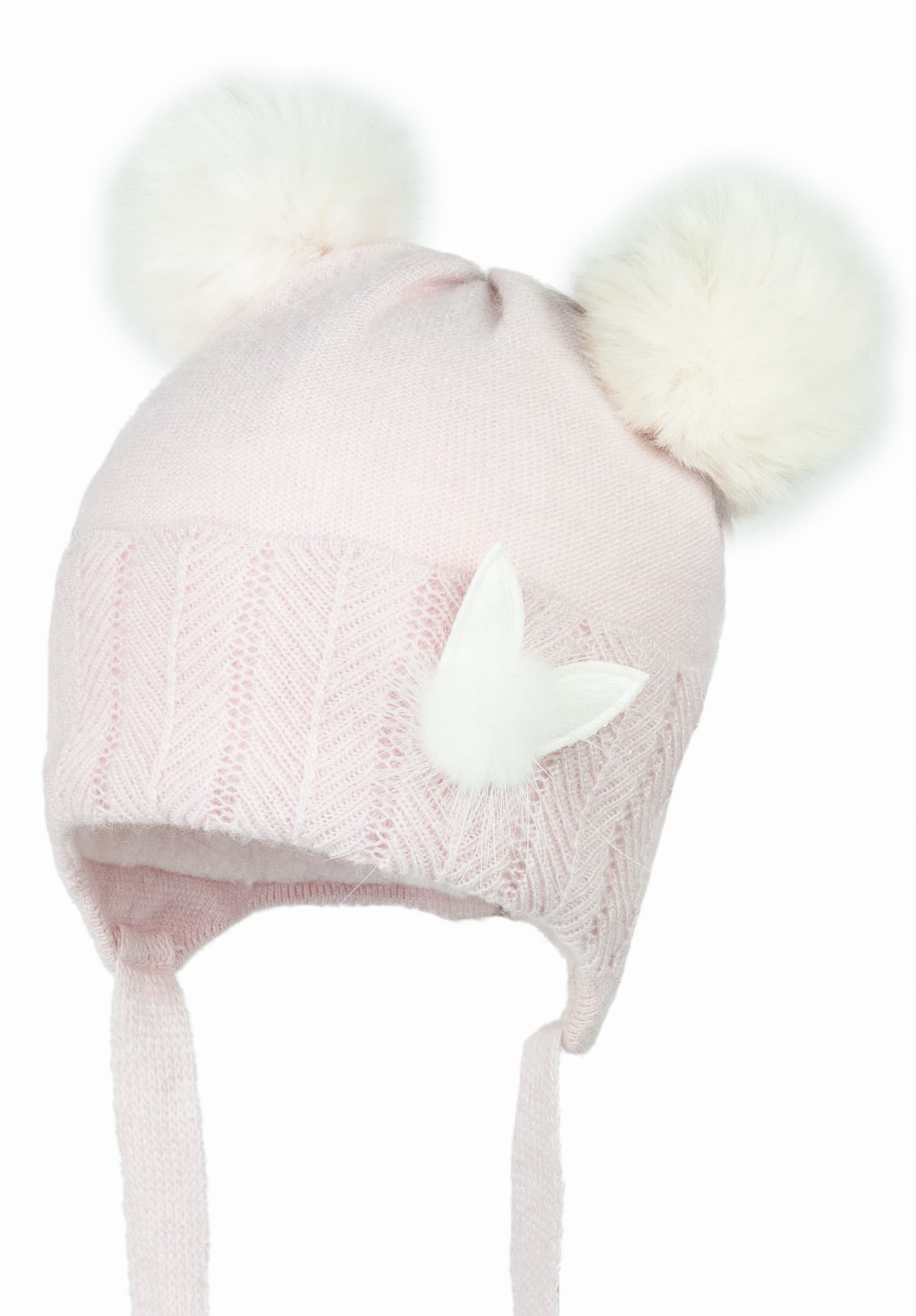 Dziewczęca czapka na zimę z dodatkiem wełny RUNA Eko-pompon Jasny Róż