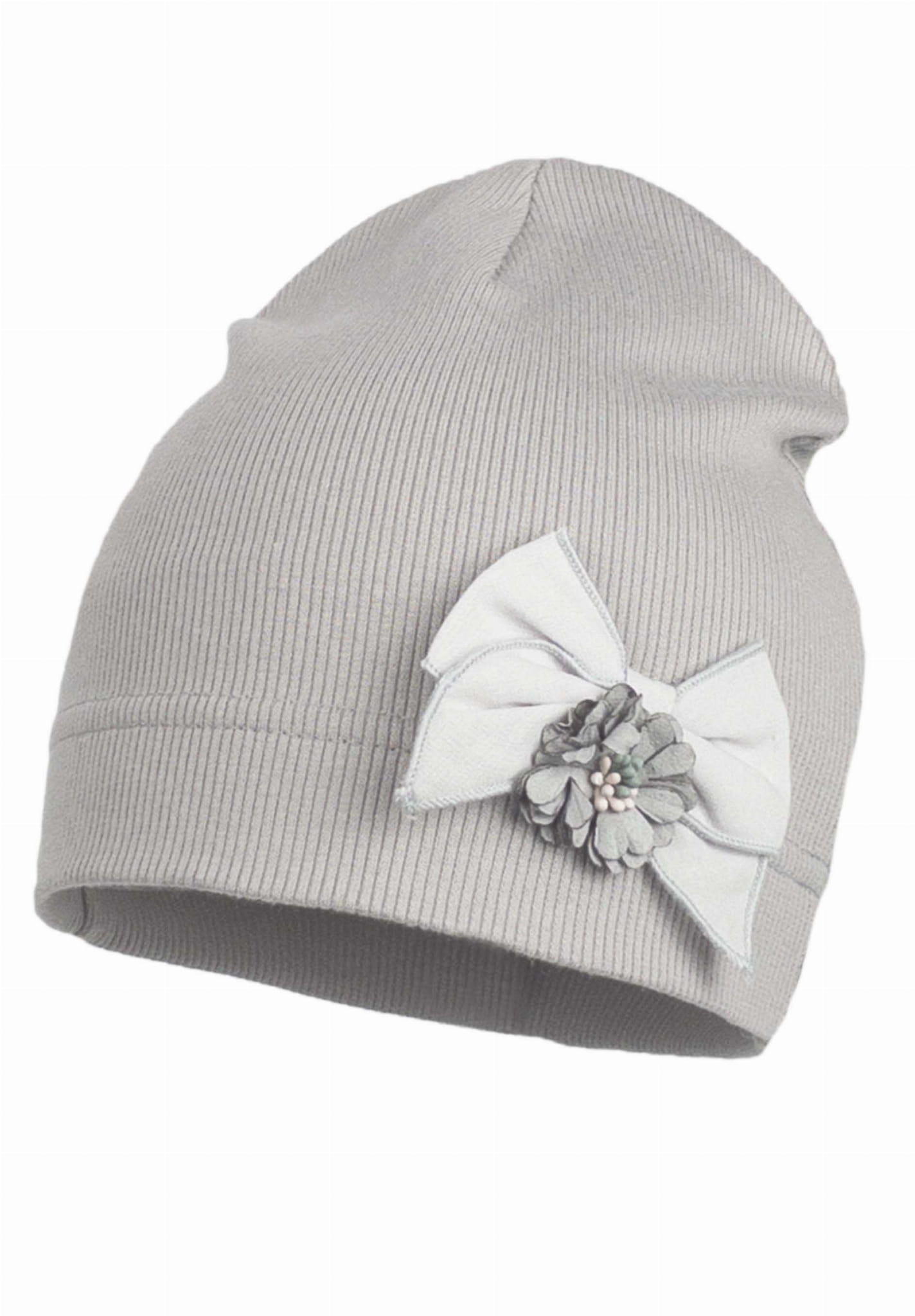 Bardzo stylowa czapka dla dziewczynki, wykonana z bawełnianej dzianiny typu "prążek".