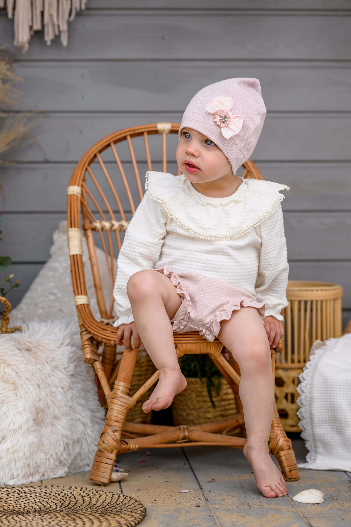 Dziewczęca czapka przejściowa SHIRA pudrowy róż