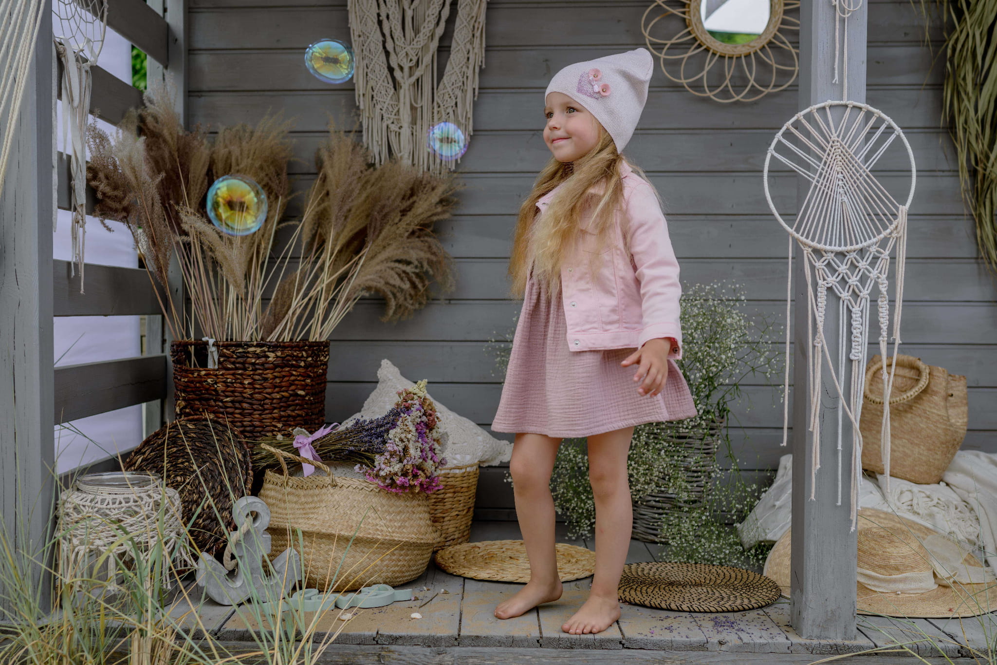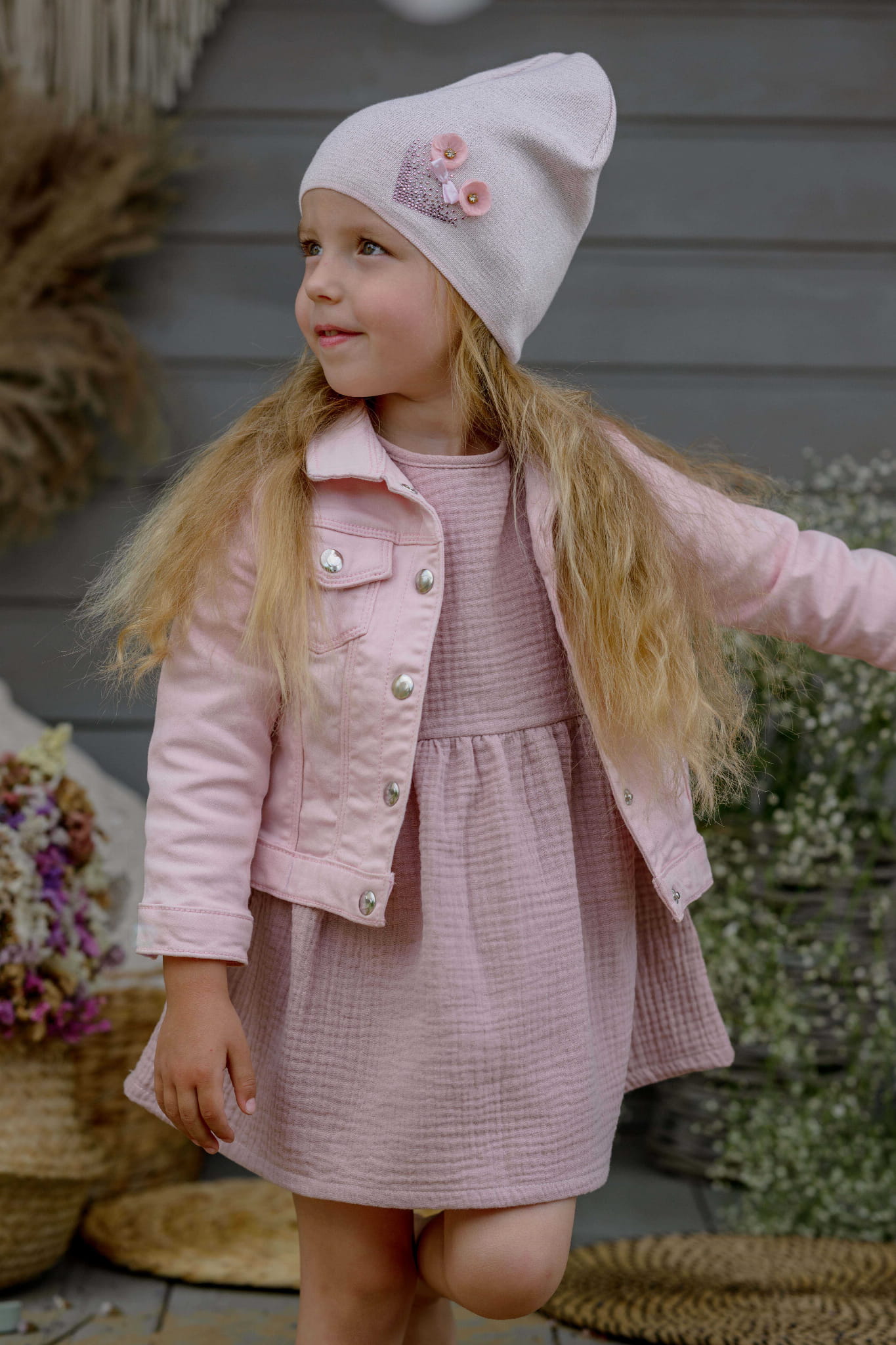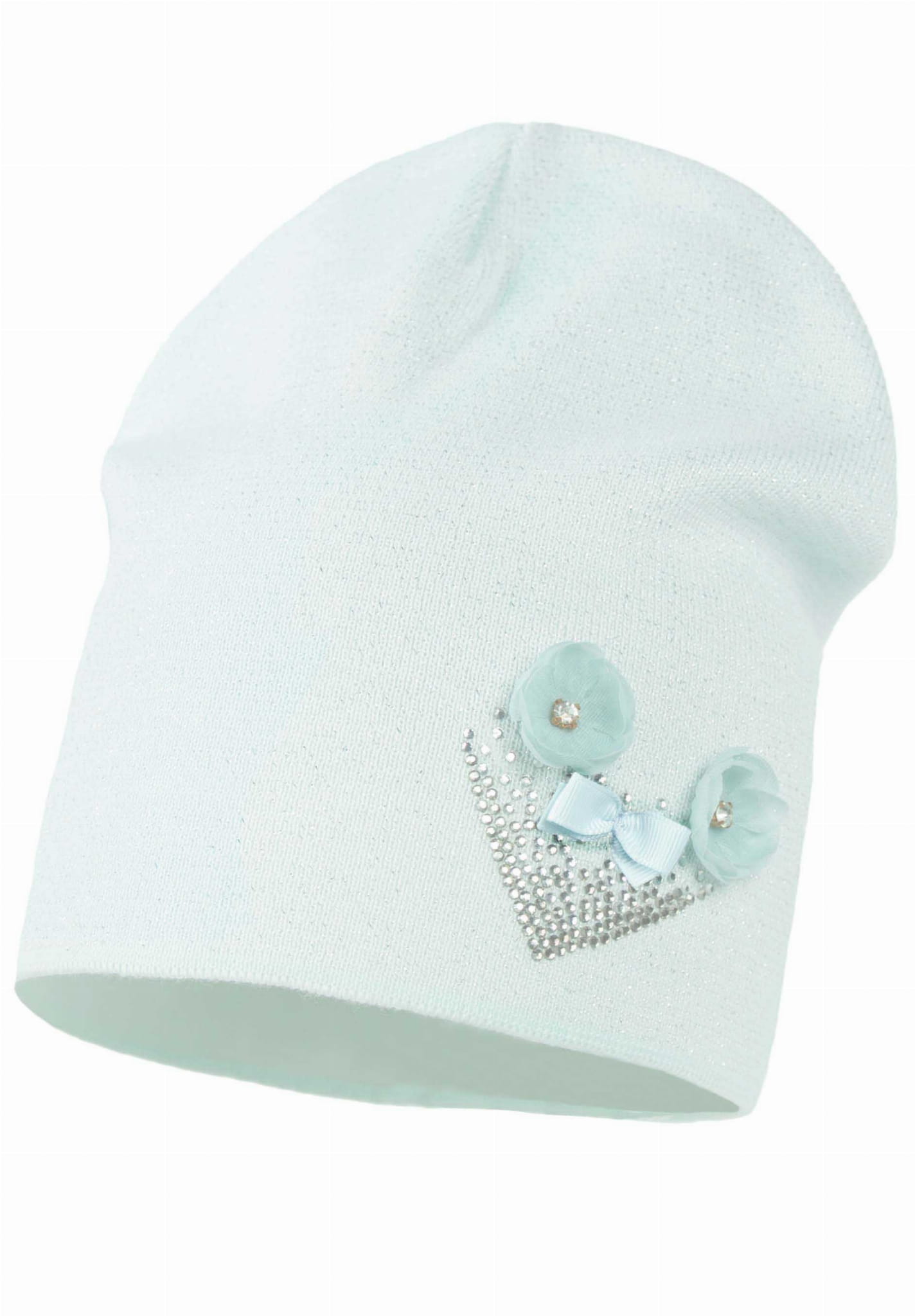 Dziewczęca czapka wiosenna CELINA j.mięta+srebrny