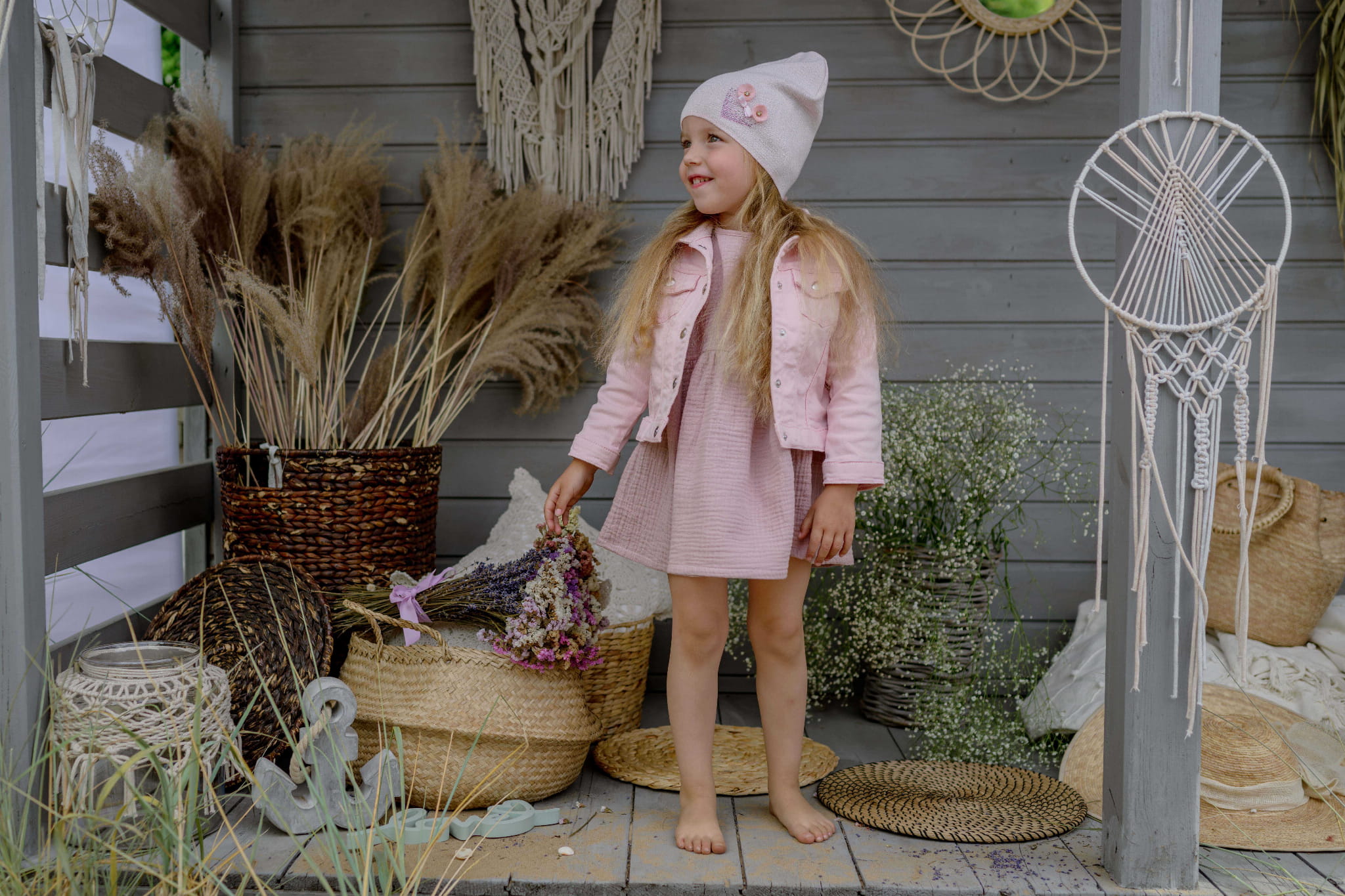 Czapka została starannie wykonana z mieszanki bawełny, wiskozy i połyskującej nici, która dodaje elegancji.
