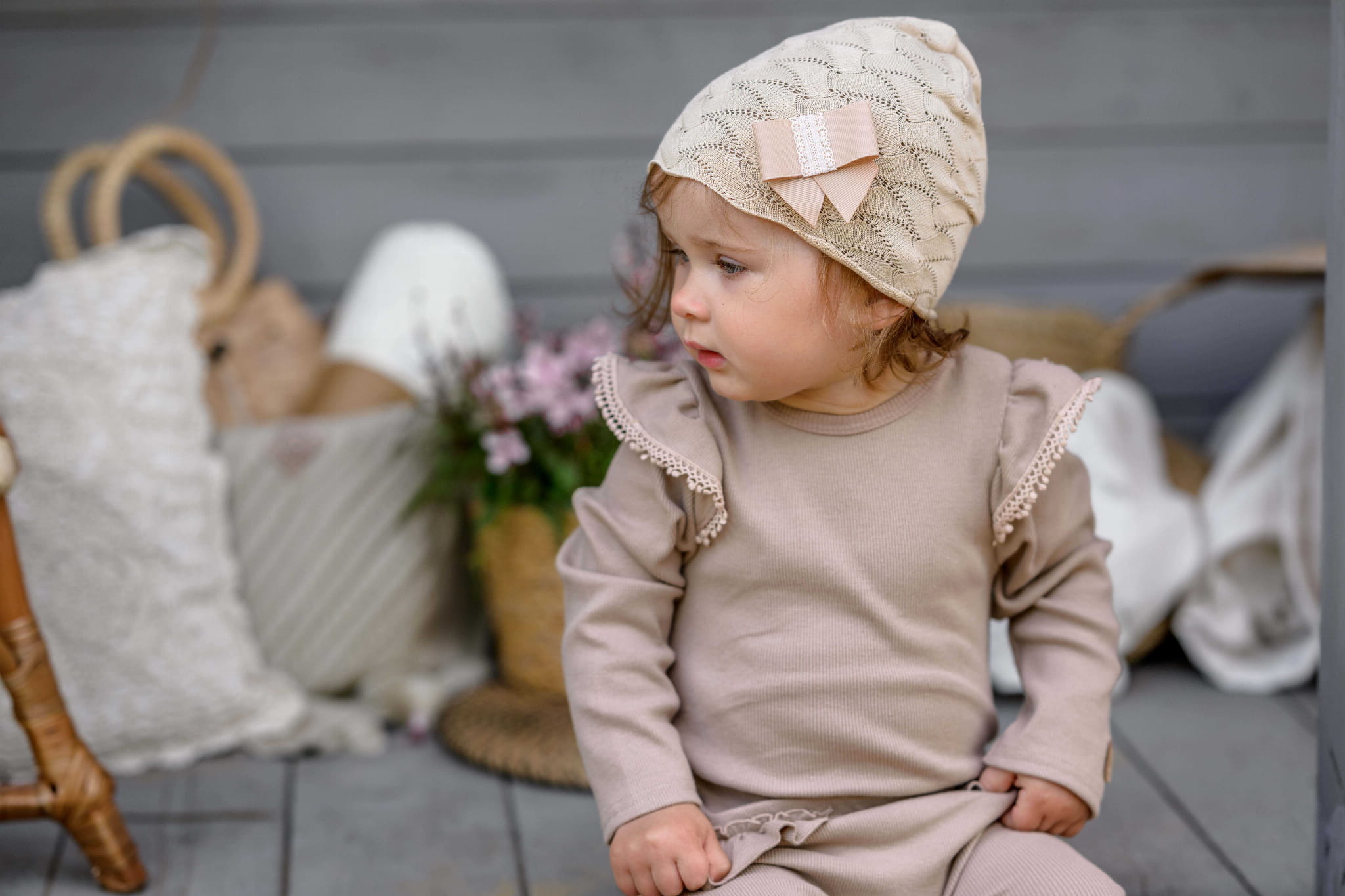 Dziewczęca czapka wiosenna YASEMIN brudny róż