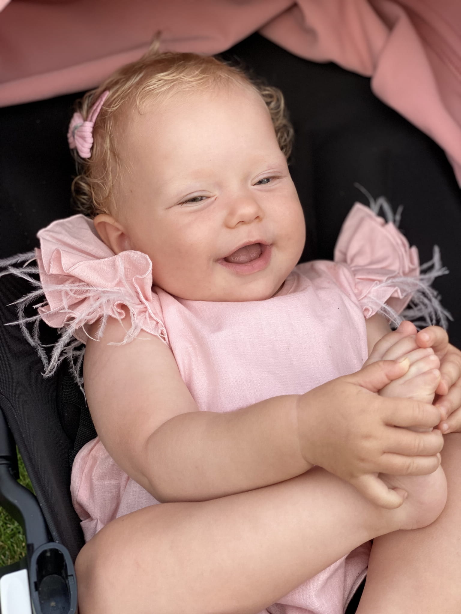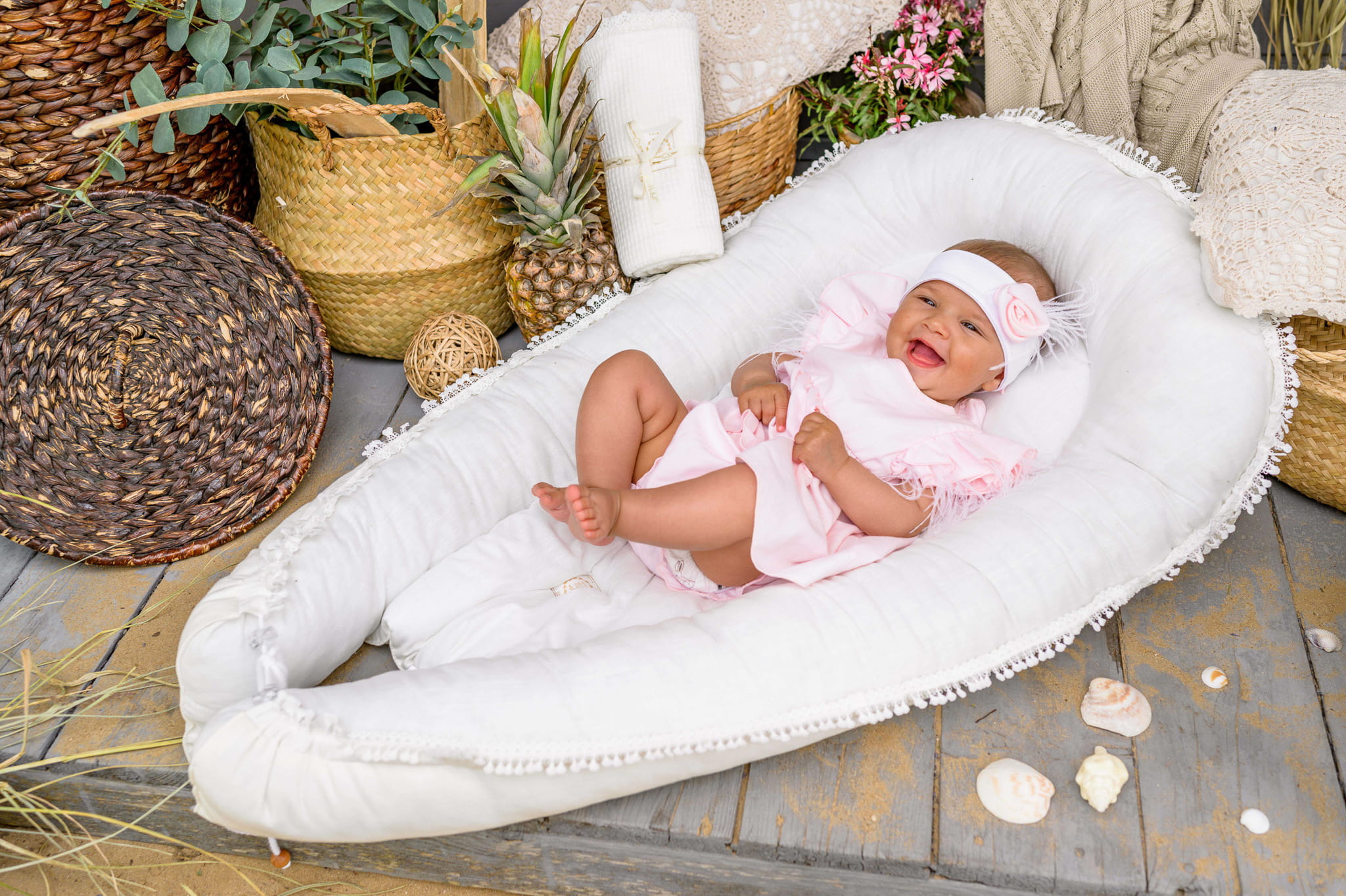 Niezwykle miła w dotyku, zdobiona falbanką i subtelnymi piórkami.