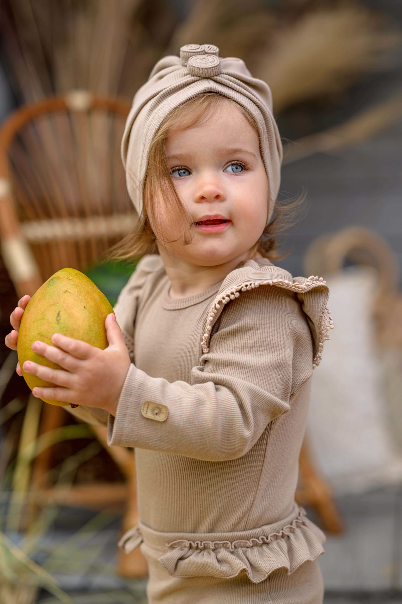 Piękne bawełniane body z długim rękawkiem dla małej dziewczynki, wykonane z bawełnianej dzianiny typu "prążek".