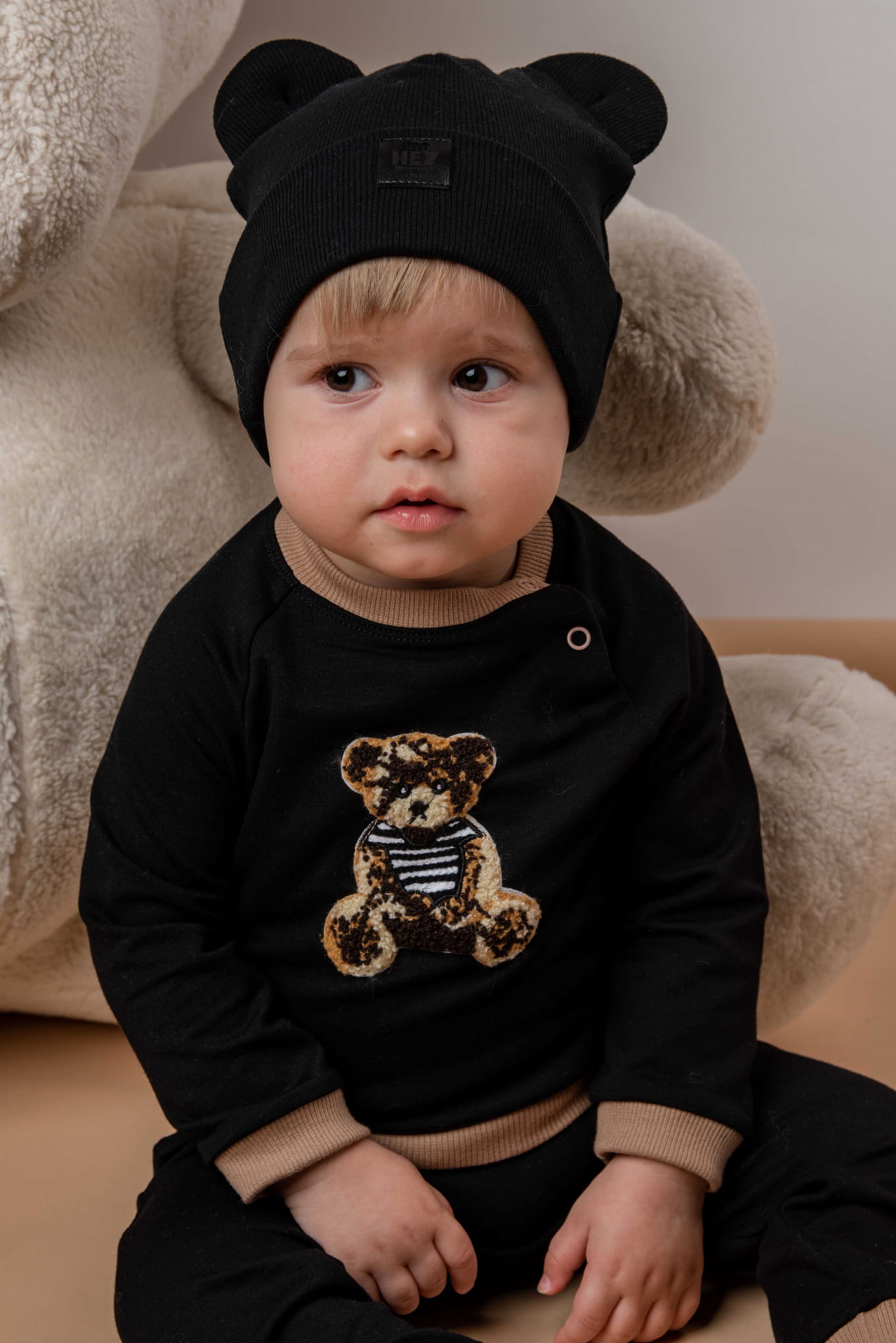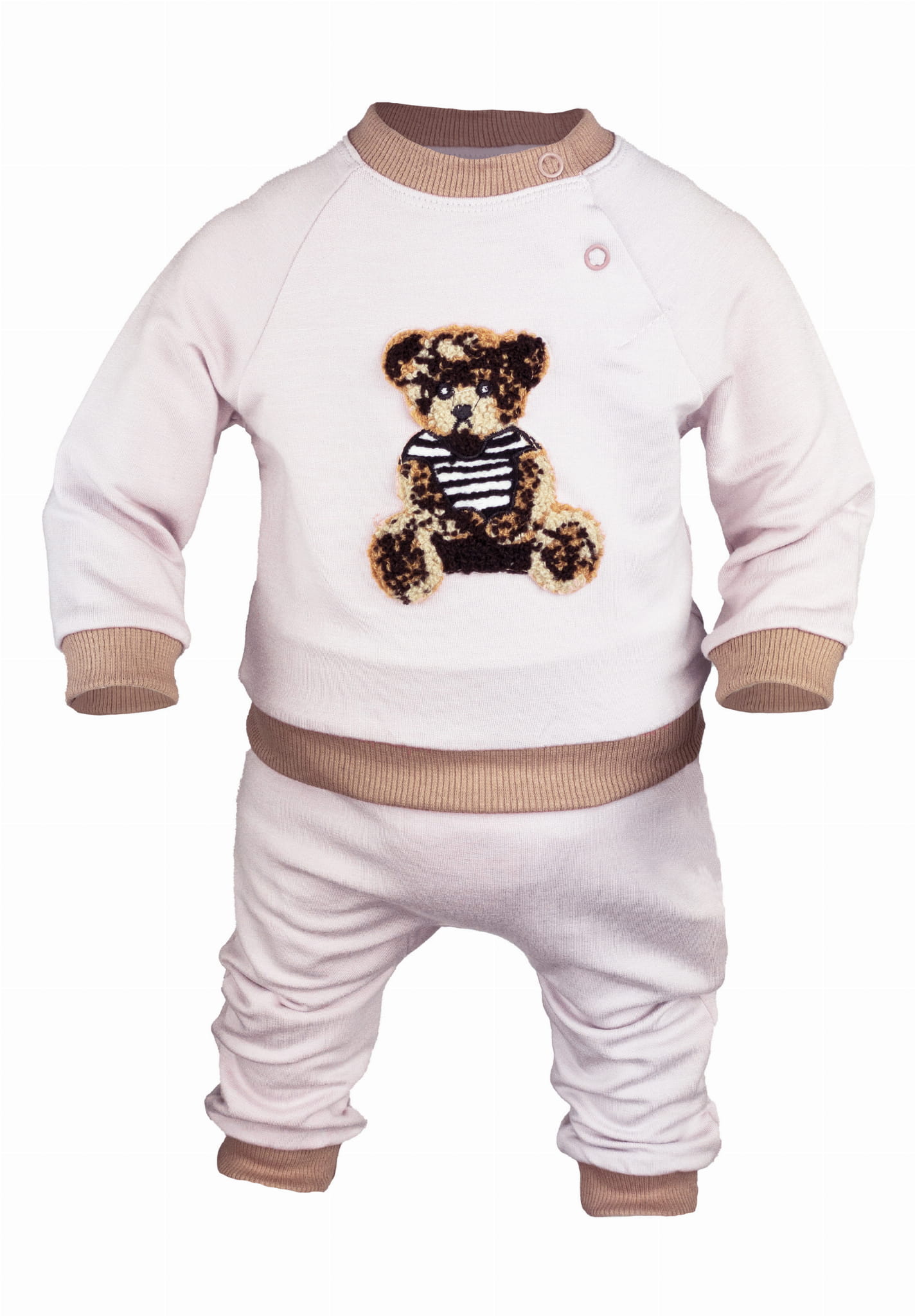 Delikatny w dotyku, bardzo elastyczny dresik zdobiony naszywką z misiem.