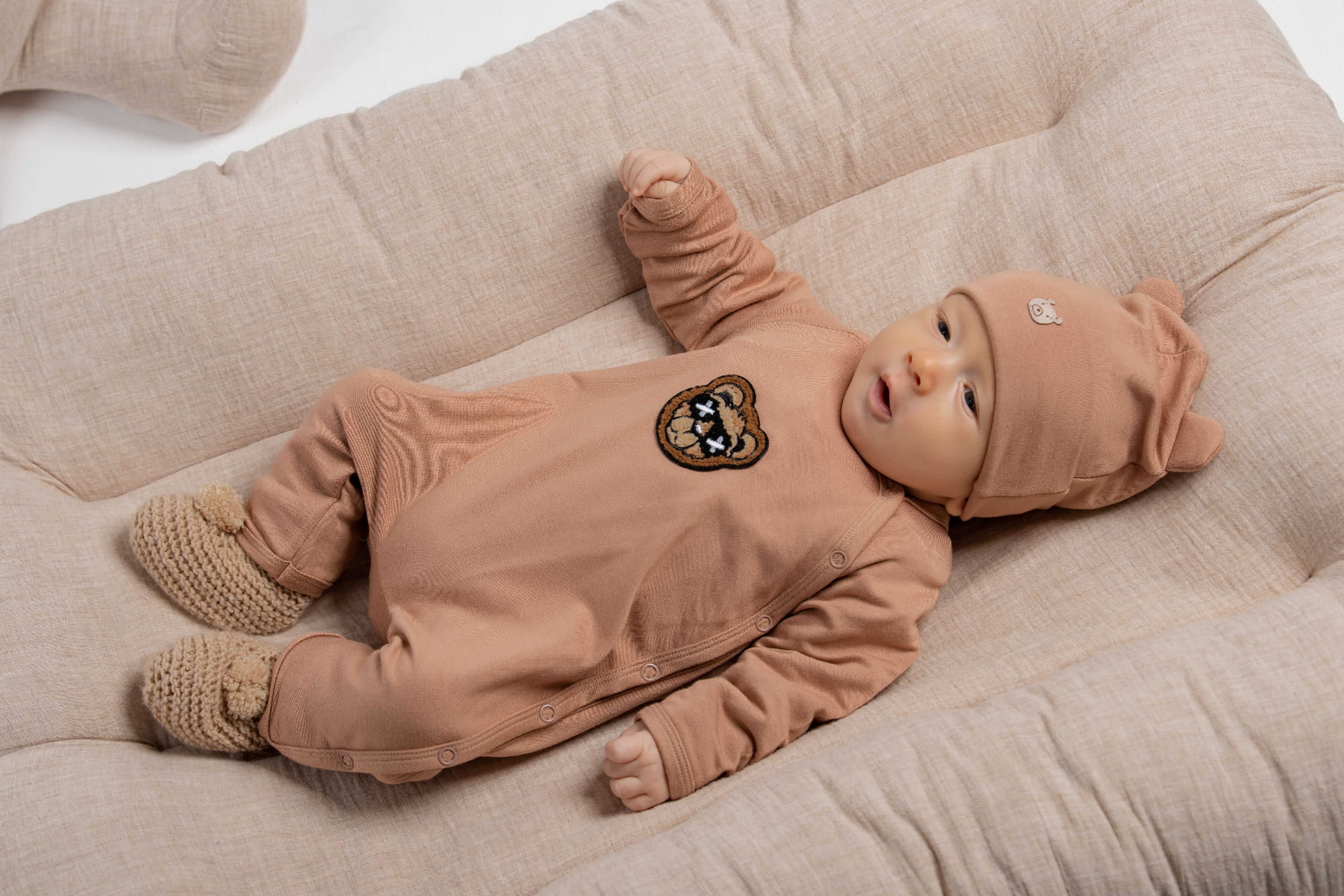 Wykonany z dresówki bambusowej, czyli dzianiny niezwykle delikatnej i naturalnej, która sprawdzi się nawet u maluszków z bardzo wrażliwą skórą.