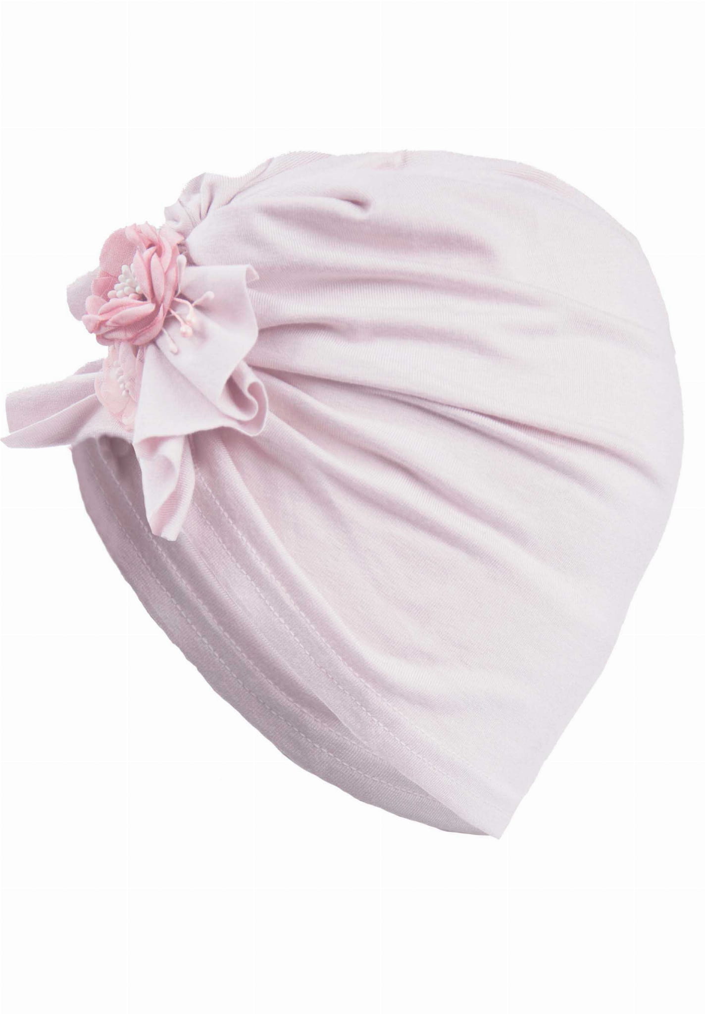 Przód czapeczki zdobi urzekająca kokarda z kwiatuszkami.