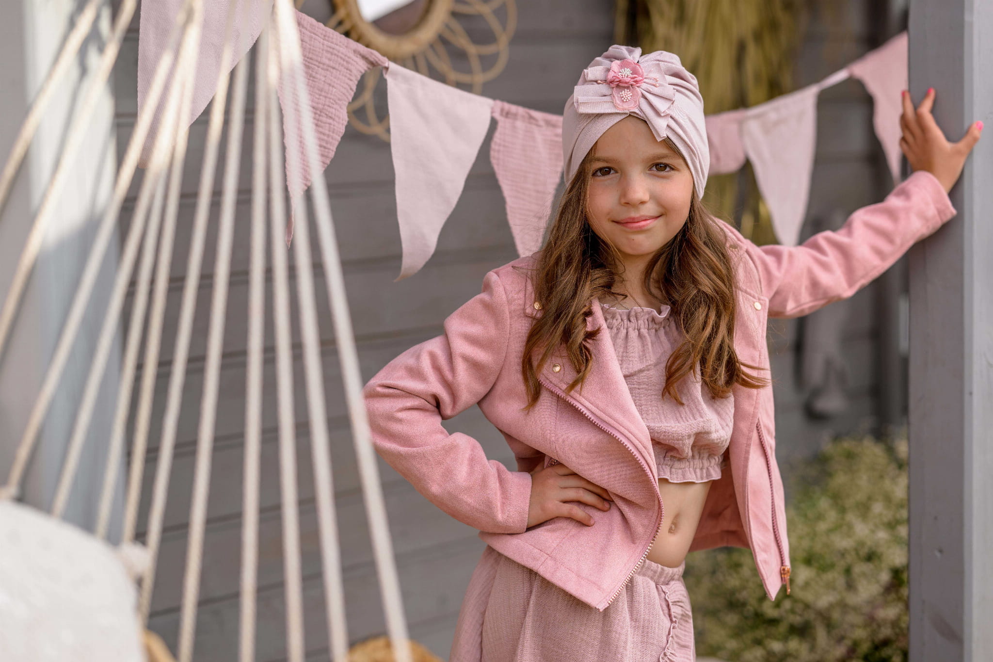 Dziewczęcy turban bambusowy na wiosnę LATIKA brudny róż