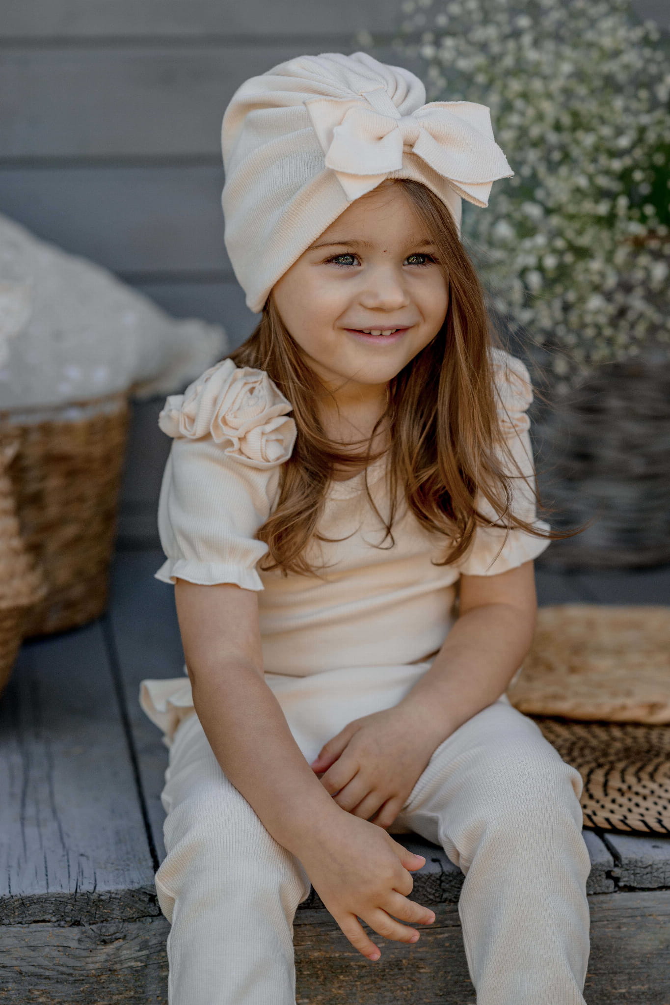 Turban jest mięciutki, bardzo elastyczny, pięknie układa się na głowie dziecka.