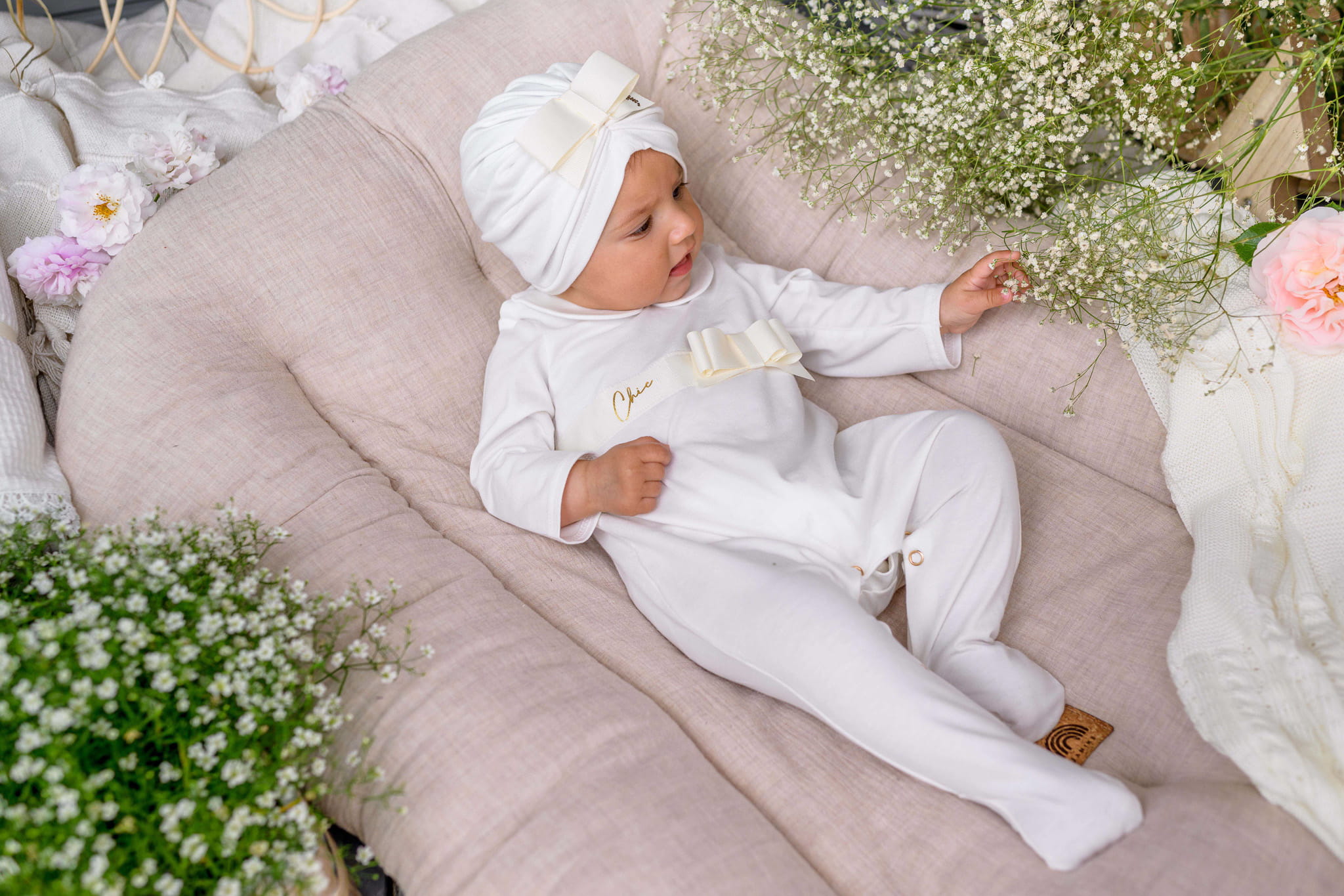 Dziewczęcy turban na wiosnę LULA ekri chrzest