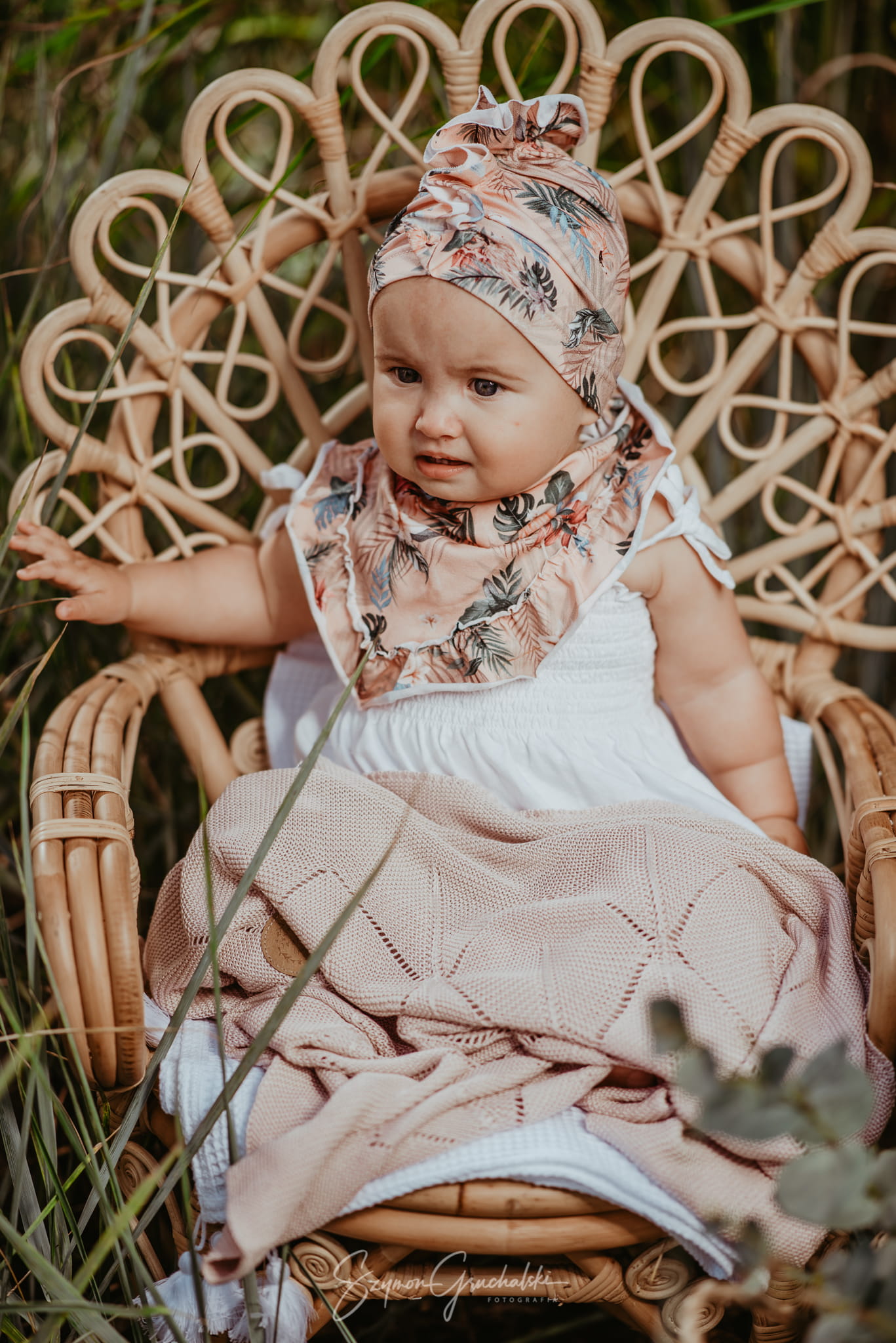 Śliczny turban THEDA "Morelowe Flamingi" nie tylko dodaje uroku ale również doskonale chroni przed słońcem i chłodem. Wykonany w 95% z bawełny, która jest miękka w dotyku, bezpieczna w kontakcie ze skórą, także małego dziecka, idealnie układa się na głowie chroniąc głowę przed słońcem a uszka przed wiatrem. Jej właściwości techniczne doskonale sprawdzają się, gdy należy odprowadzić pot z czoła i chronić przed silnym słońcem. Dzięki temu zapobiega podrażnieniom i poparzeniom słonecznym. Jest wygodny lekki przewiewny. Wzór którym pokryty jest materiał został wymyślony i stworzony przez nasz zespół projektowy. Pragniemy aby nasze produkty były wyjątkowe, niebanalne, stworzyły szansę aby cię zachwycić.