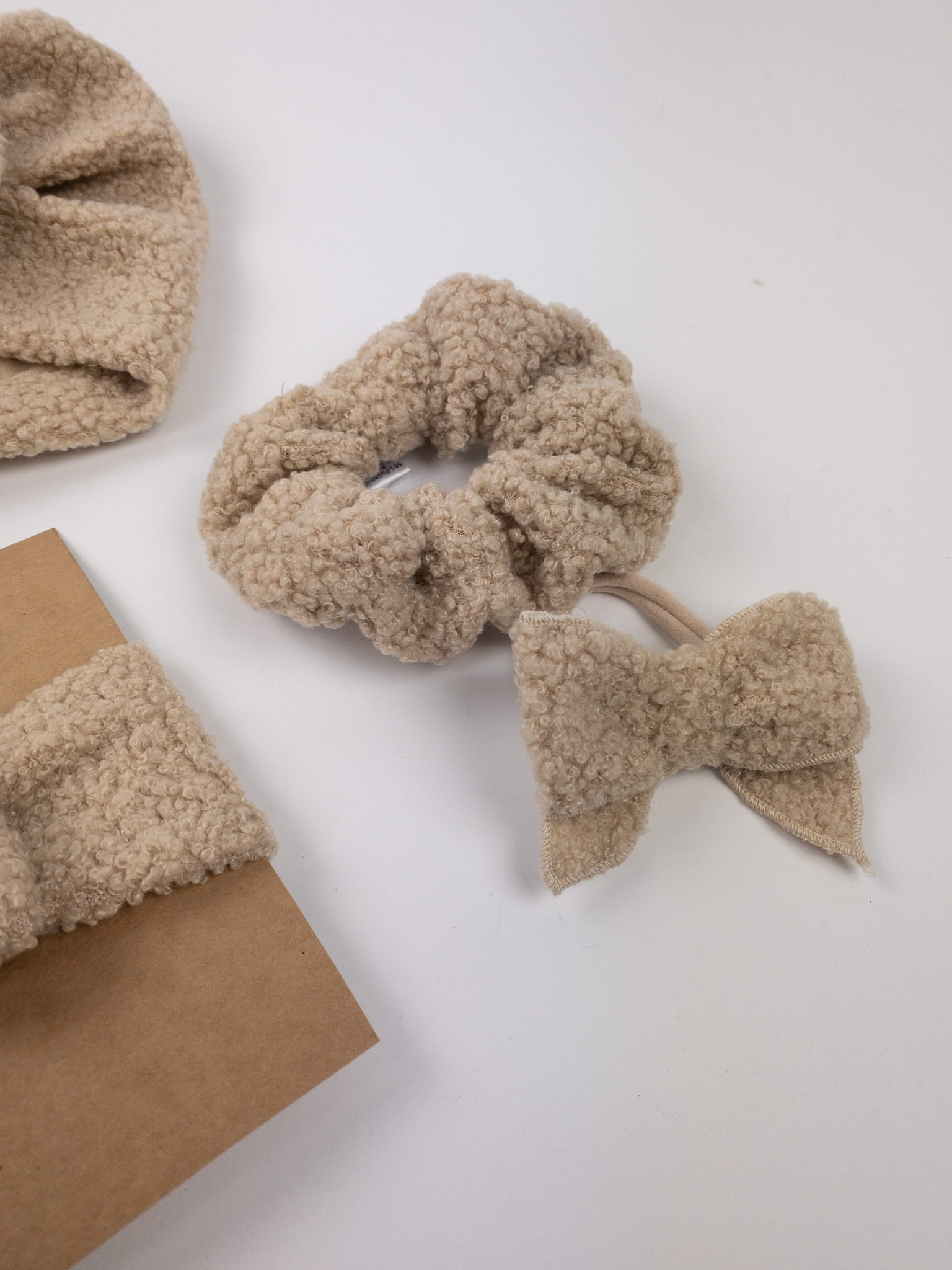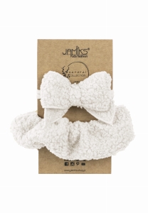 Frotka i gumka z kokardą do włosów TATIANA boucle ekri