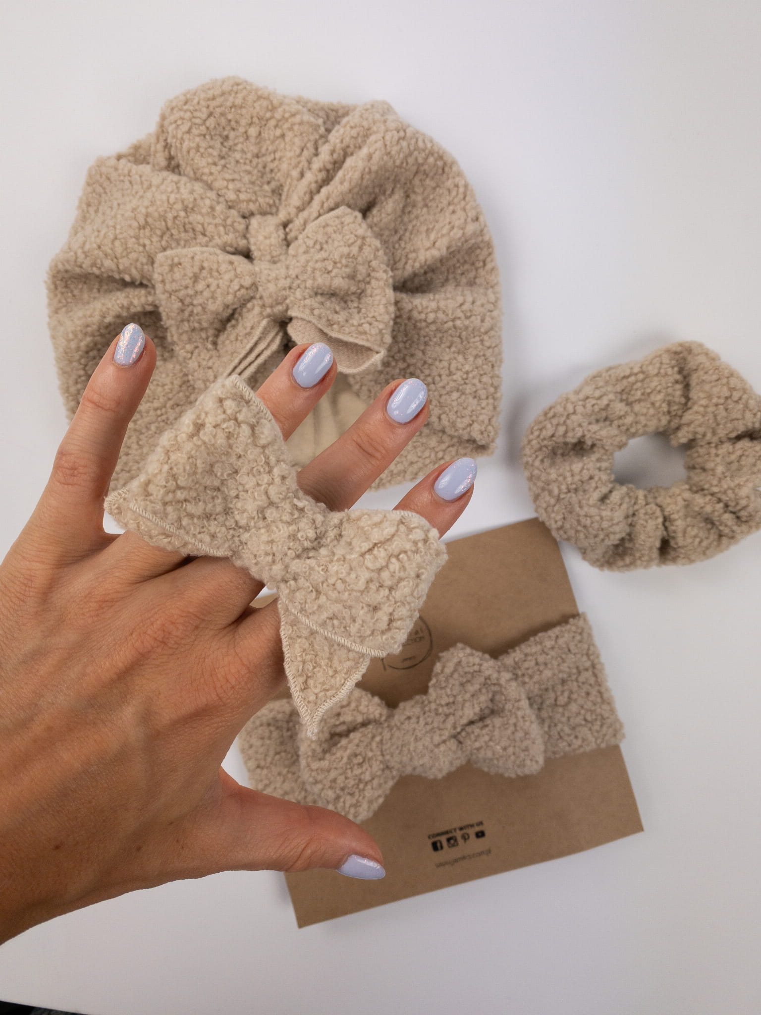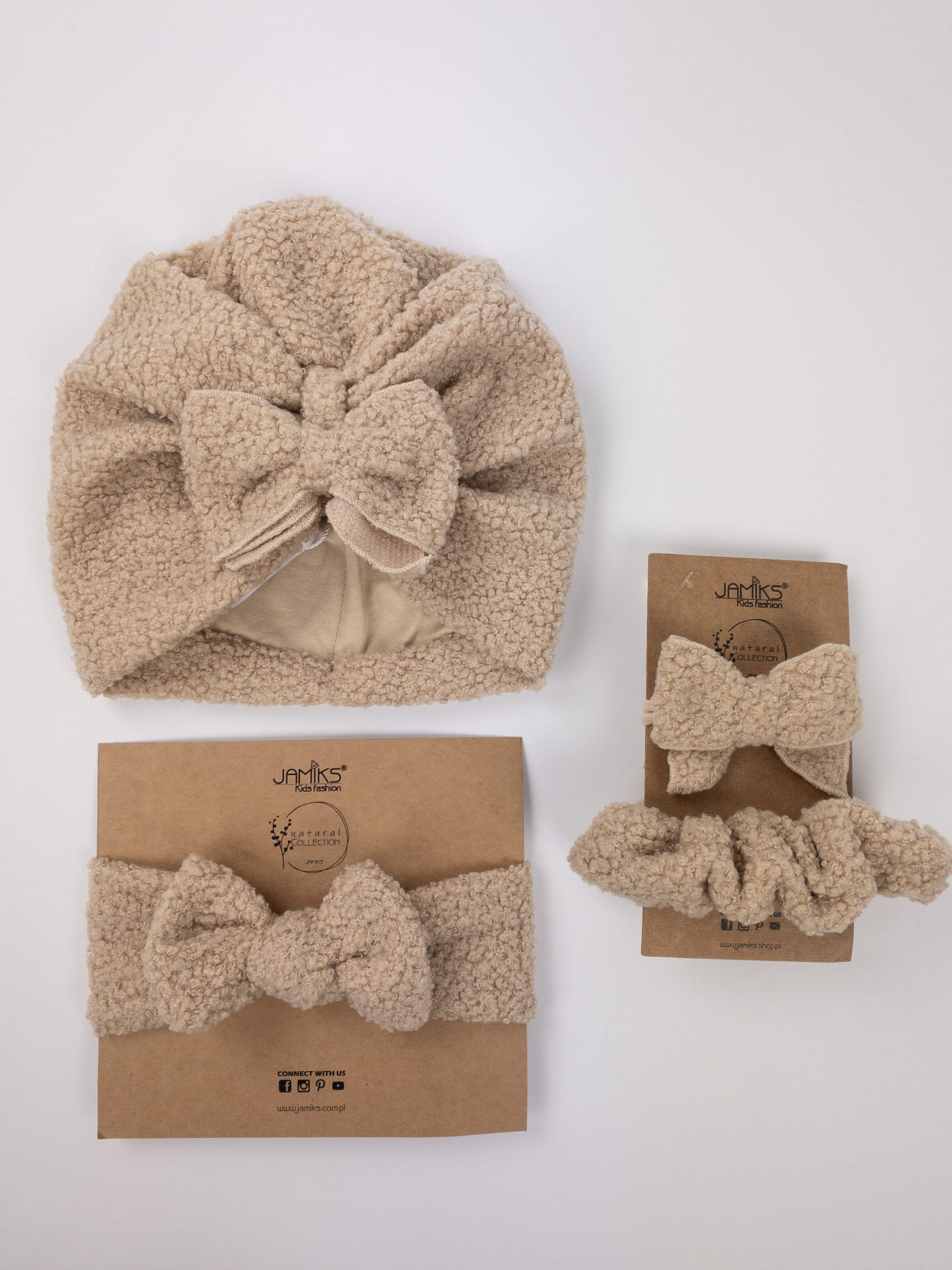 Frotka i gumka zz kokardą do włosów TATIANA boucle beż