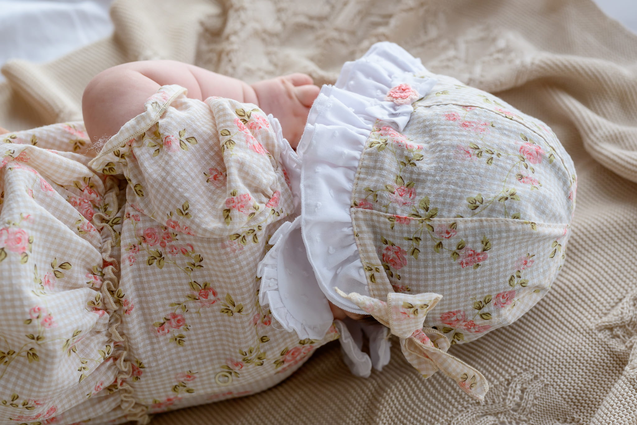 Z tyłu posiada wiązanie, które pozwala na regulację czapki i dopasowanie do obwodu główki.
