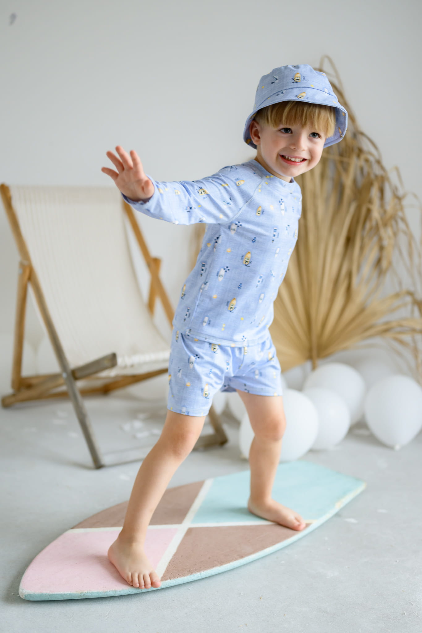 Materiał pokryty został specjalistyczną powłoką z ochroną SPF 50. Dzięki temu twoje dziecko będzie przygotowane na cały dzień zabawy w basenie czy w morzu.