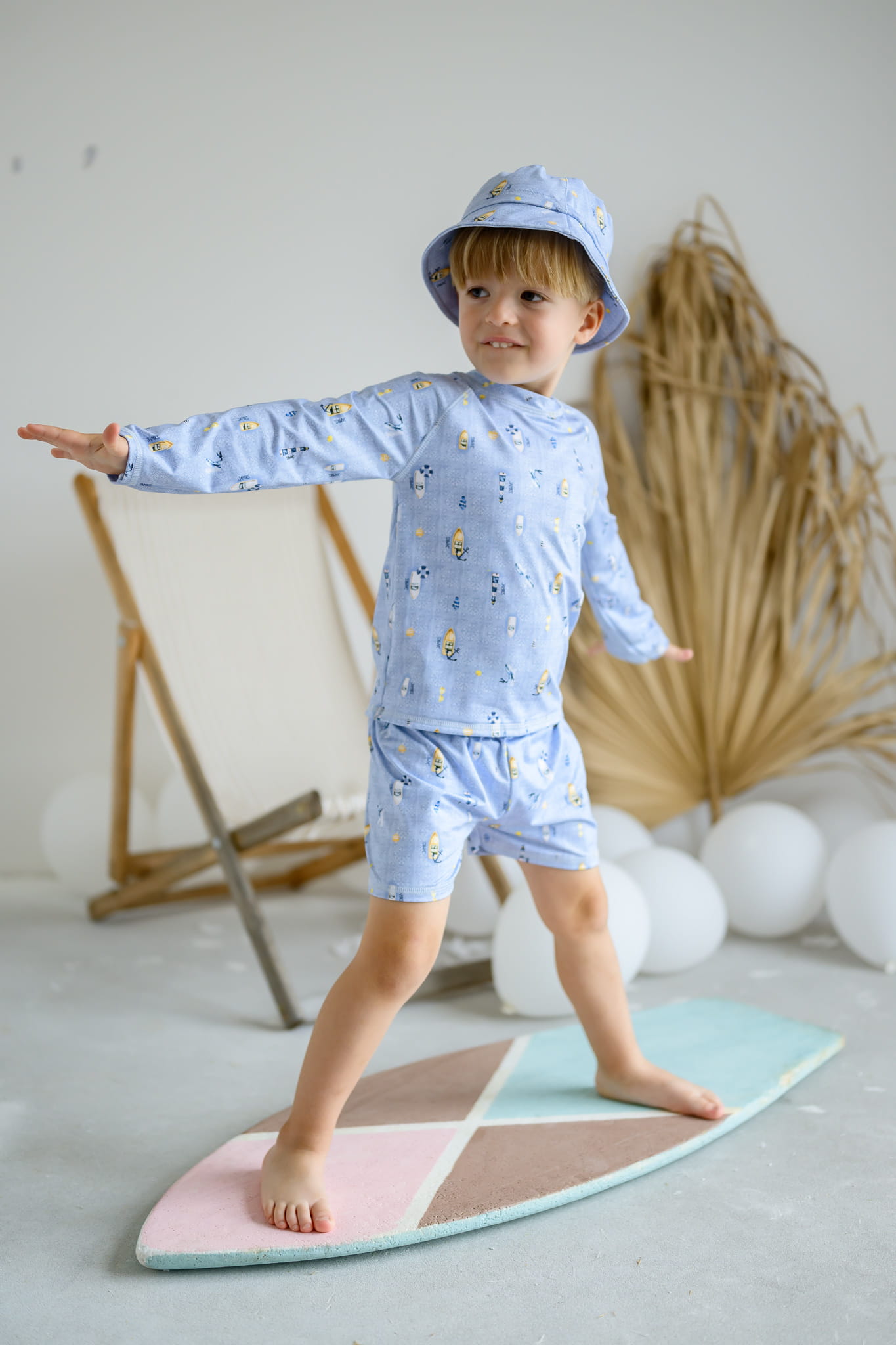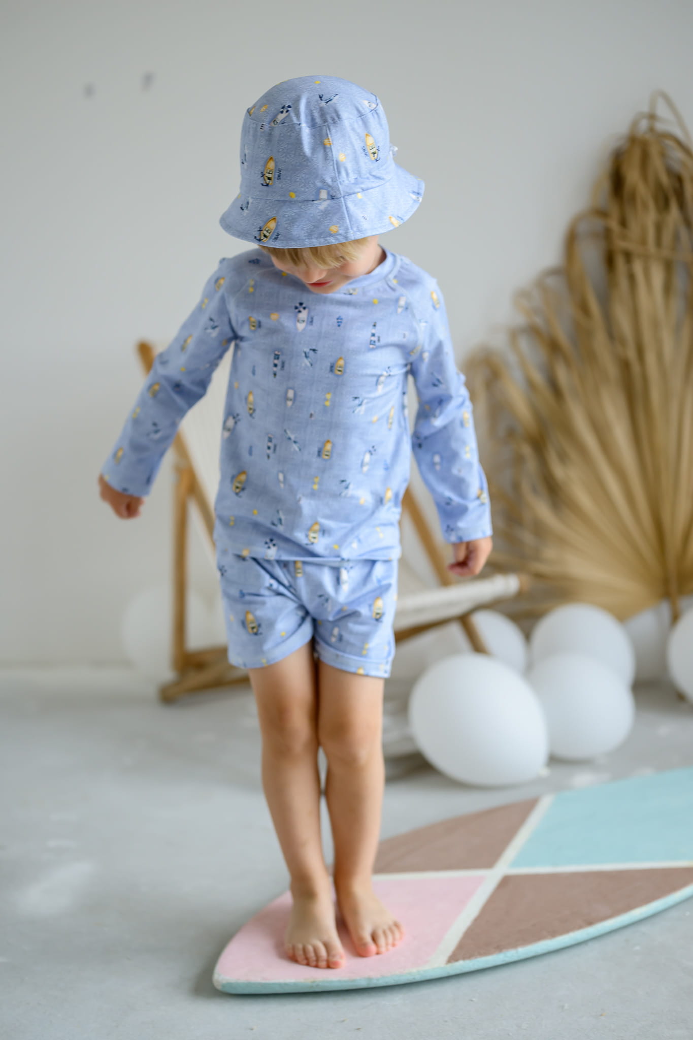 Materiał pokryty został specjalistyczną powłoką z ochroną SPF 50. Dzięki temu twoje dziecko będzie przygotowane na cały dzień zabawy w basenie czy w morzu.