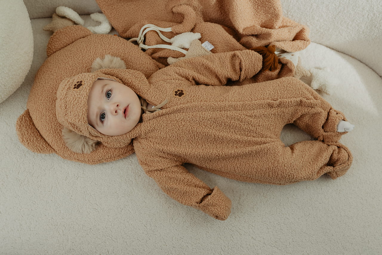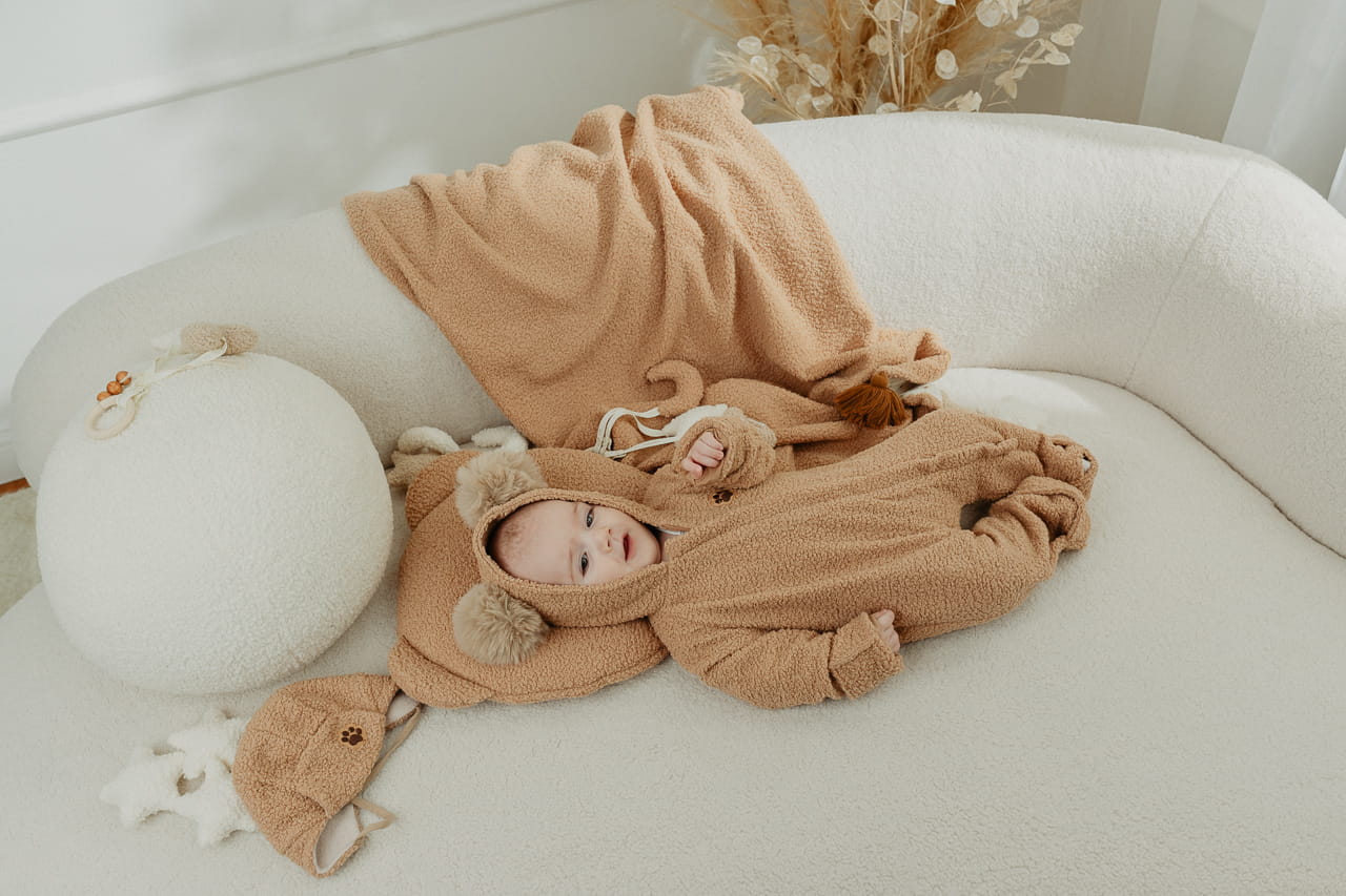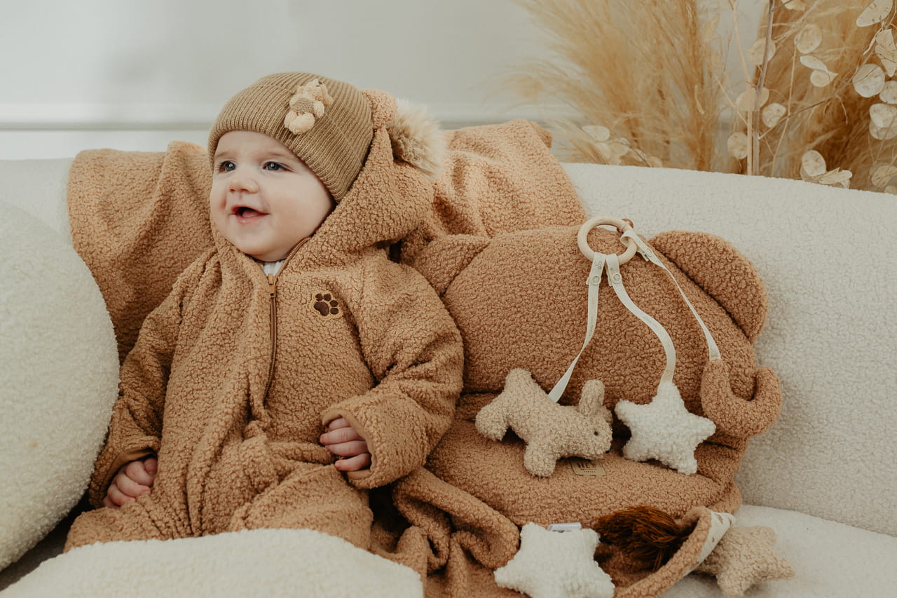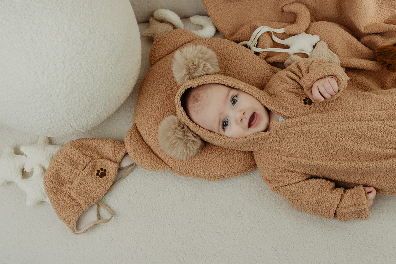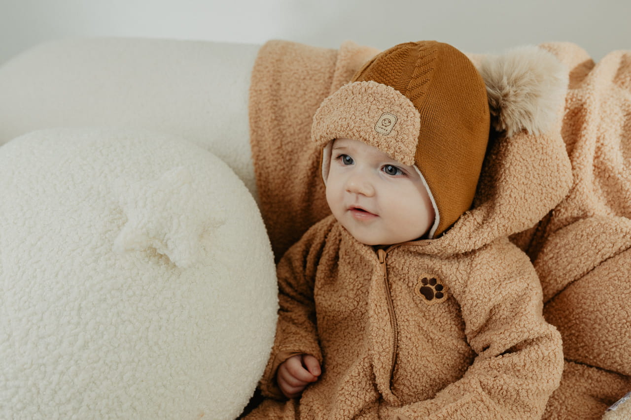 Kombinezon przejściowy ALLAM boucle to doskonały wybór na zmienne warunki pogodowe. Wyposażony w praktyczny kaptur ozdobiony dwoma uroczymi pomponikami, kombinezon dodaje dziecku uroku i stylowego wyglądu. Posiada małą naszywkę w postaci psiej łapki. Jest zapinany na zamek, co ułatwia zdejmowanie i zakładanie. Wykonany z 100% poliestru, zapewnia trwałość i odporność na warunki atmosferyczne, a podszewka z 95% bawełny i 5% elastanu gwarantuje wygodę i elastyczność. Kombinezon ALLAM boucle łączy elegancki wygląd z praktycznością, zapewniając Twojemu maluszkowi ochronę przed chłodem i wyjątkowy wygląd.