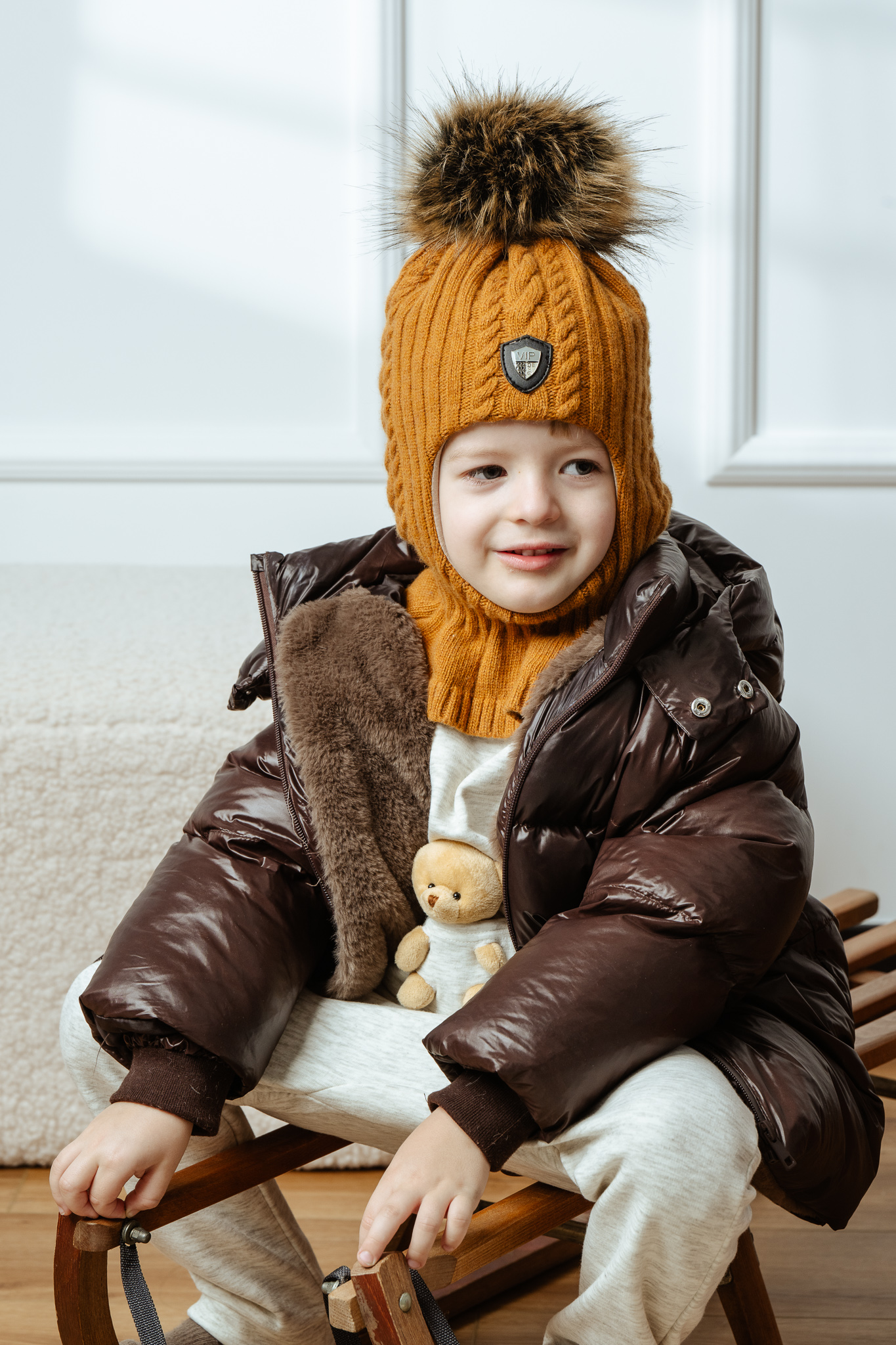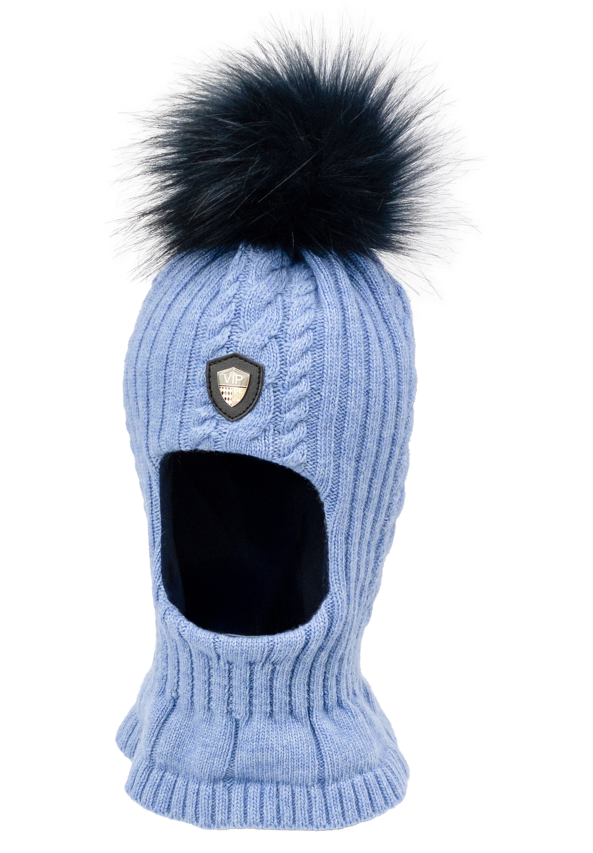 Kominiarka zimowa ESTERE dla chłopca z pomponem, z domieszką wełny i kaszmiru oraz bawełnianą podszewką – ciepła, przytulna i chroniąca głowę oraz szyję na chłodne dni.