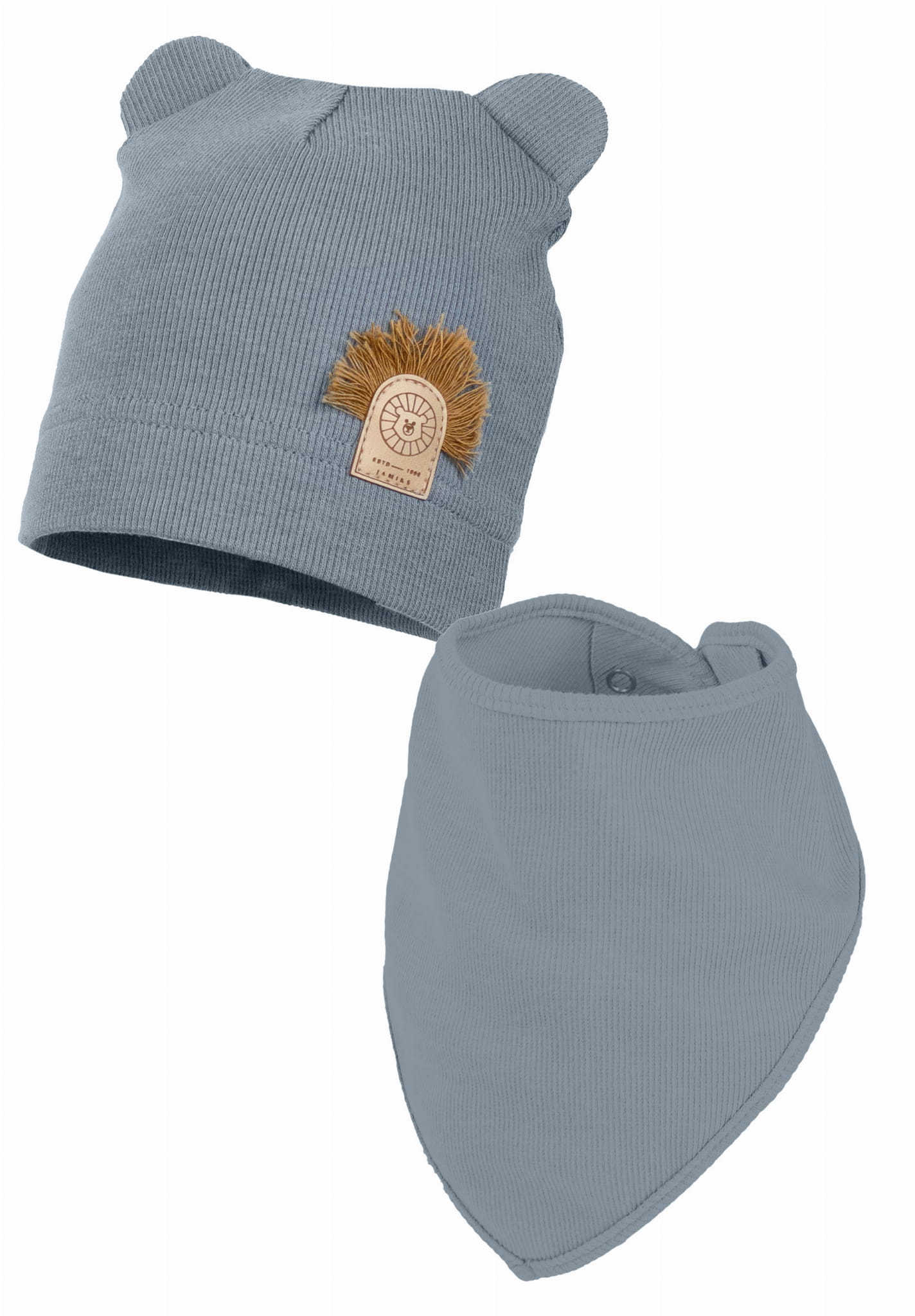 Komplet FLORENTYN to stylowa i praktyczna propozycja dla chłopca na wiosnę. Zestaw składa się z czapki z uszkami misia, ozdobionej naszywką z lwem i frędzelkami, oraz dopasowanego komina, wykonanych z bawełnianego prążka. Wysokiej jakości materiał zapewnia wygodę, elastyczność i komfort noszenia.