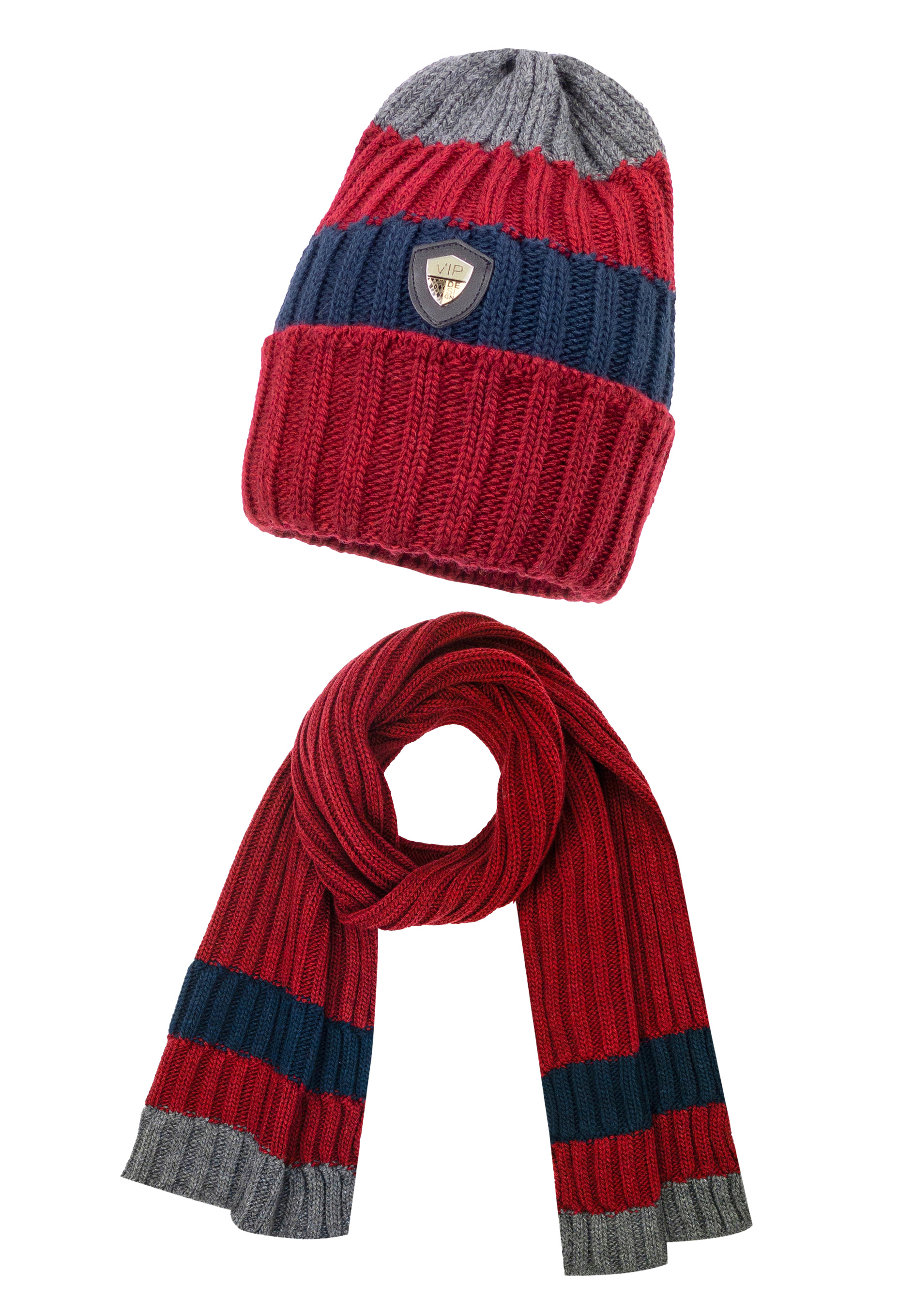 Komplet czapka i szal RUFUS dla chłopca na zimę wiśniowy+granat